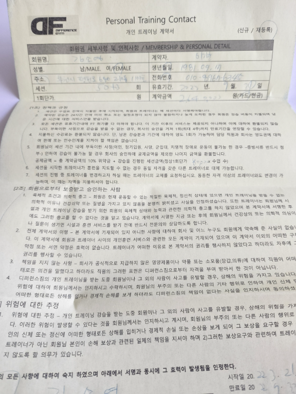 오랫동안 혼자서 운동하다가 이번에 제대로 운동 배워보고싶어서 pt 등록했습니다!!