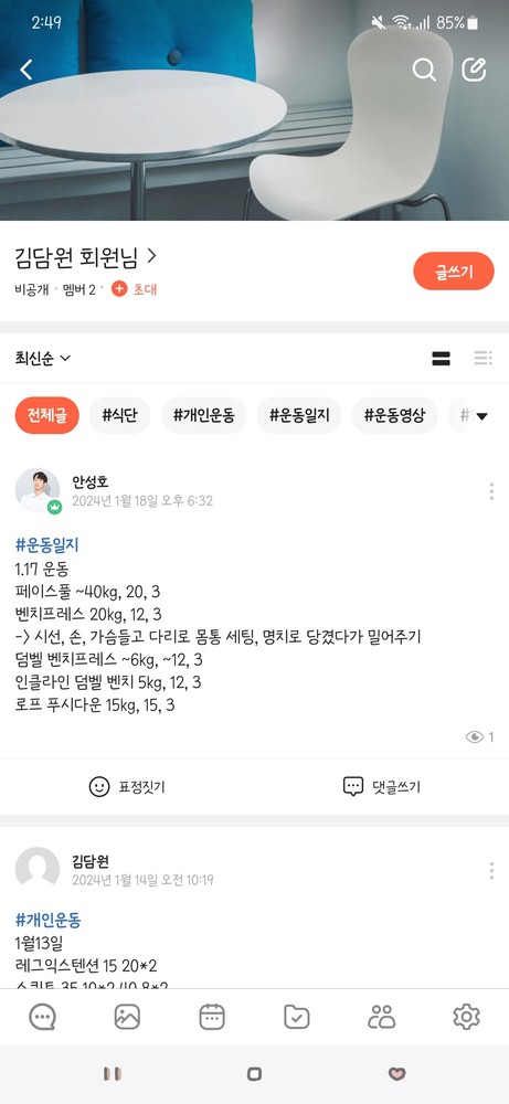 인생 살면서 다양한 운동을 하지는 않았지만 여러개 경험 해본 것중에 처음으로 꾸준히 2달동안 쉬지 않고 운동과 식단을 하게 된거 같아요! 선생님께서 엄청 친절하게 운동이나 식단에 관한 질문에 잘 대답해주시고 운동도 편안하게 잘 가르쳐 주셔서 믿고 열심히 하고 있습니다^^!