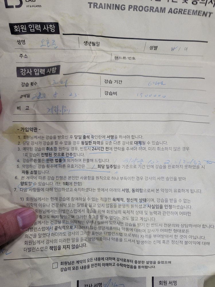 허허 살면서 이런 트레이너 쌤 처음봐서 바로 등록해서 15번 정도 진행했습니다.