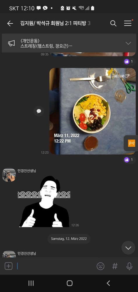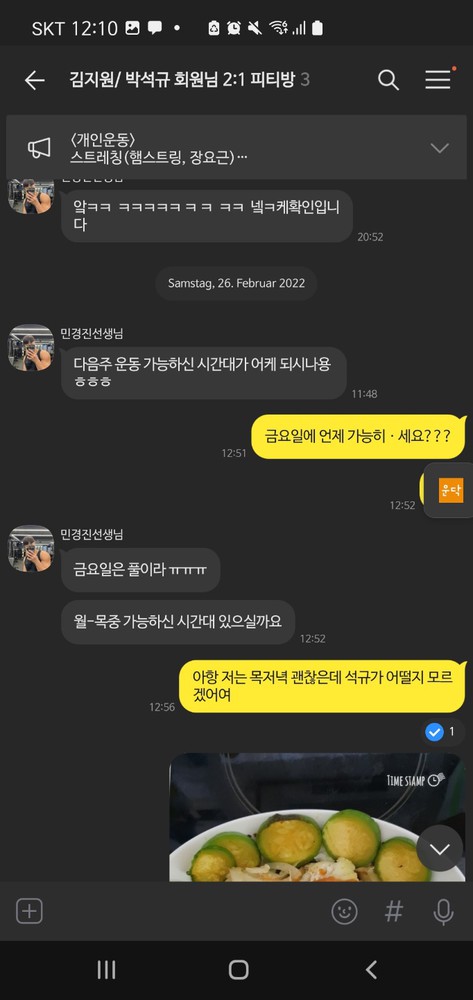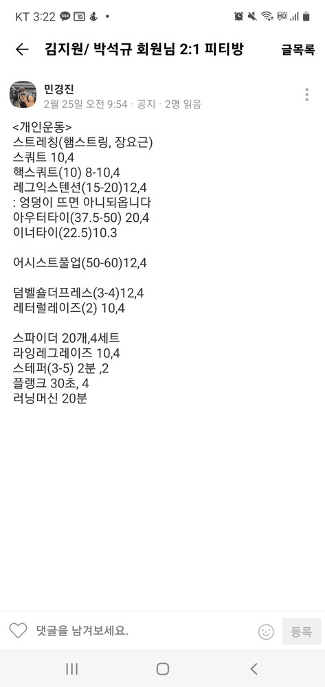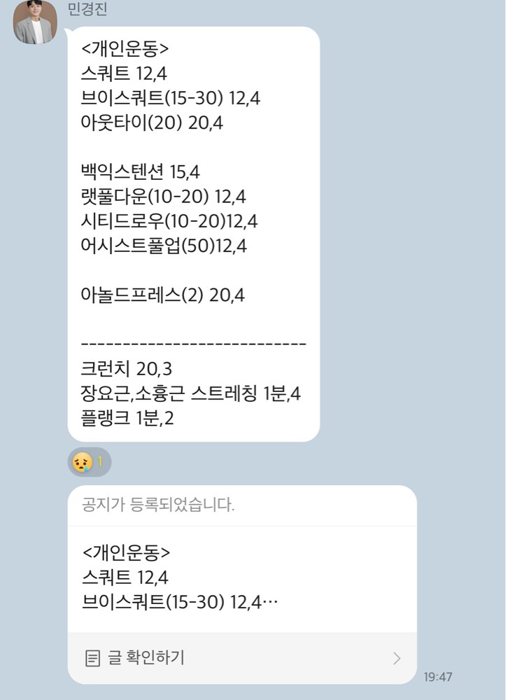 수업 시간에 진행했던 내용 중 혼자 운동할 때 신경써야하는 부분을 정리해서 카톡을 보내주셨어요 허허 심지어 퇴근하시고 저를 위해 영상까지 만들어주셨습니다…..🥹