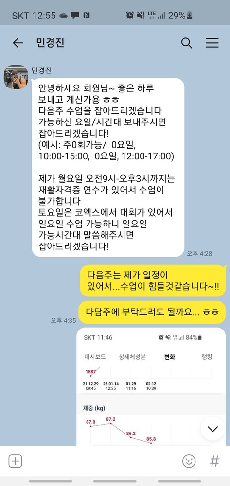 다른 트레이너분들 체험 더 안하고 일정 확인하고 그냥 바로 등록하려구요