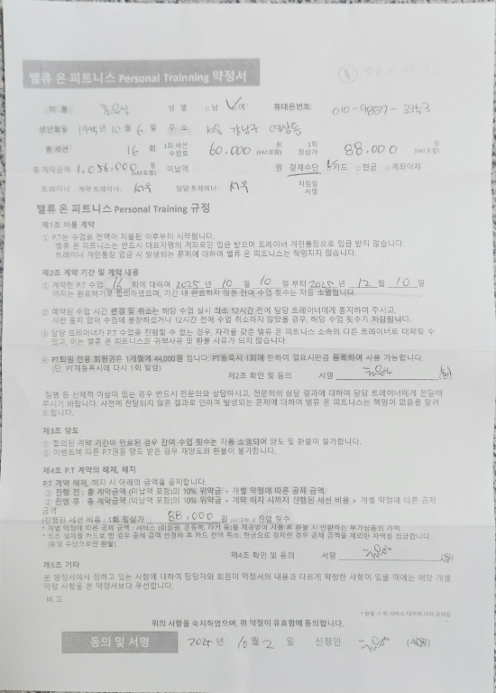 무료체험 후 바로 피티 등록했습니다