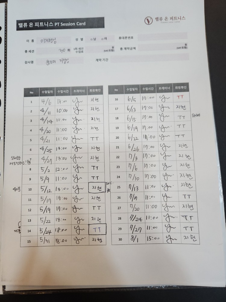 매일 PT운동일지에 그날 부족했던점 잘했던점 짚어주시면서 꼼꼼하게 봐주시고 식단, 주기적인 인바디 체크 등등 수업시간 외적으로도 신경많이 써주십니다.