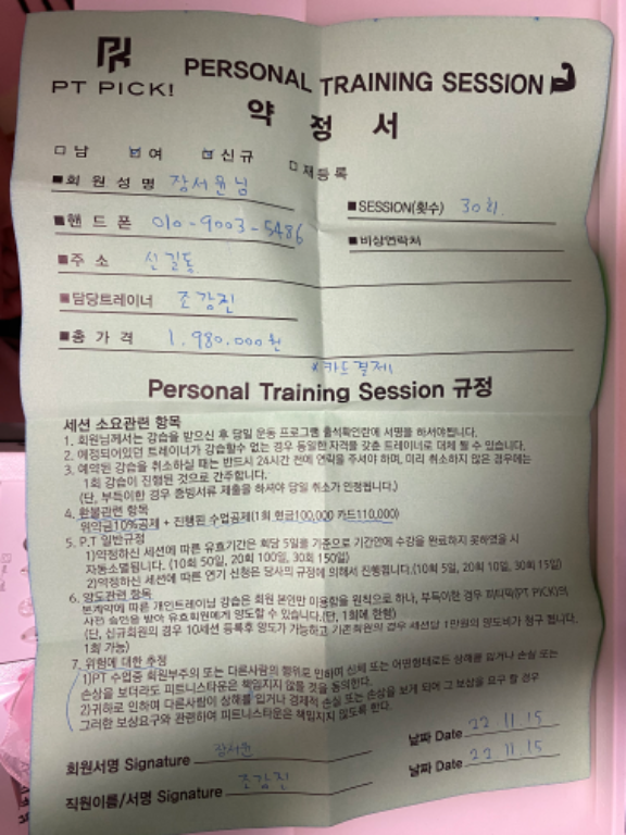 상담 받은 곳들 중에 제일 체계적으로 상담을 진행해주셔서, 걱정없이 PT결제를 했습니다!
