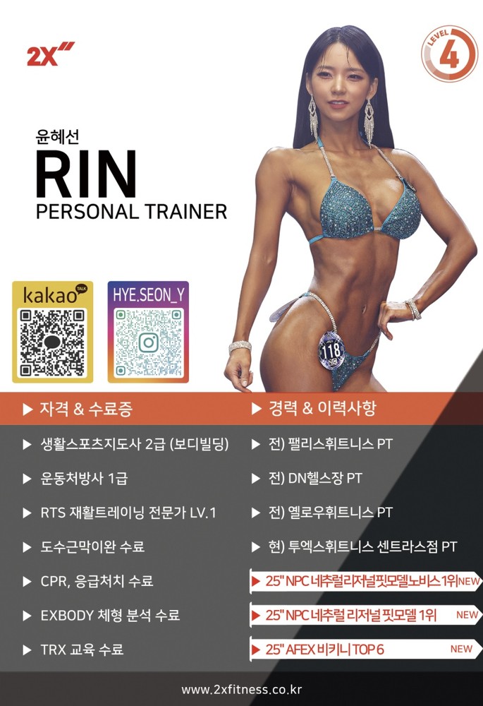 1. 대회 경험이 풍부해 여자 몸을 정확히 이해하세요. 어떤 부위를 자극해야 원하는 라인이 나오는지 운동·식단 원리를 바로 알려주십니다. 무리한 계획은 사전에 차단해 지속가능한 코칭을 해주세요