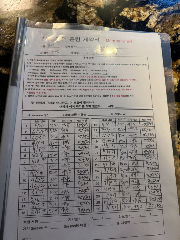 언제나 컨디션 체크로 시작하시고 어떤 수업 진행할지 준비해 오셔서 짜임새 있는 수업하십니다 저는 어느덧 30회 진행 후 20회 추가로 다니고 있어요 회차가 줄어드는게 아쉽네요😂