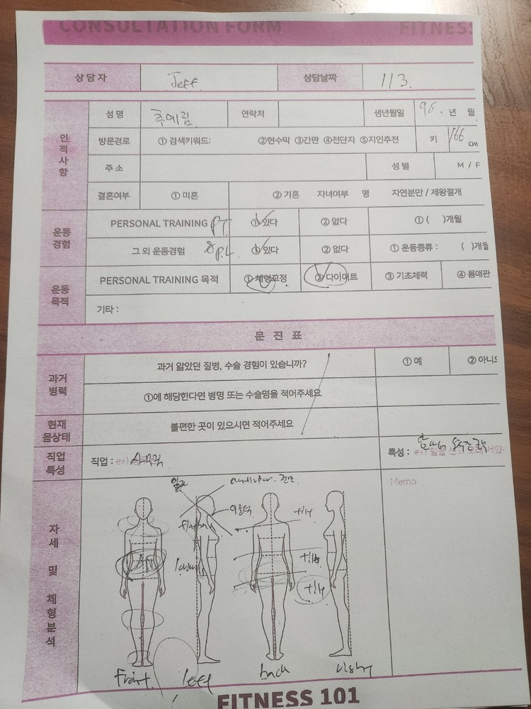 그런데 JEFF선생님은 재활관련지식도 풍부하시고 제가 아픈부위에 왜 통증이 발생하는지, 어떻게 통증없이 운동할 수 있는지 알려주셔서 체험피티만으로도 많은 도움이 됐습니다.