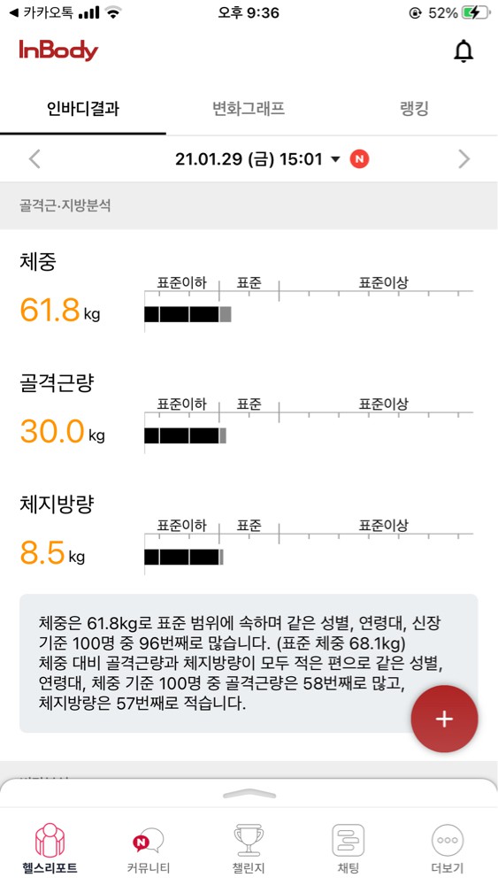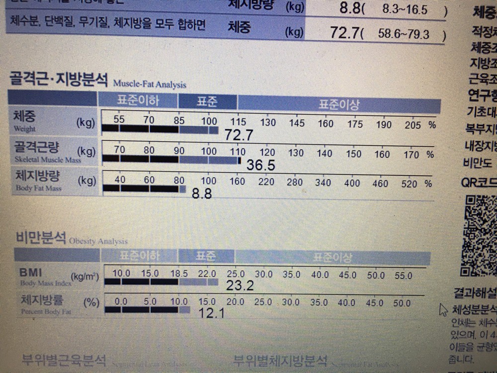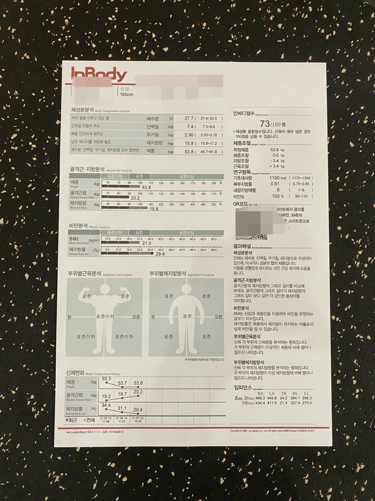 10번째 세션 때 잰 인바디 결과로는 체지방2.1kg 가 줄고 근육량 100g이 늘었습니다! 다음 인바디가 기다려져요😆운동을 안하다가 새해를 맞아서 운동을 하기로 결심하고