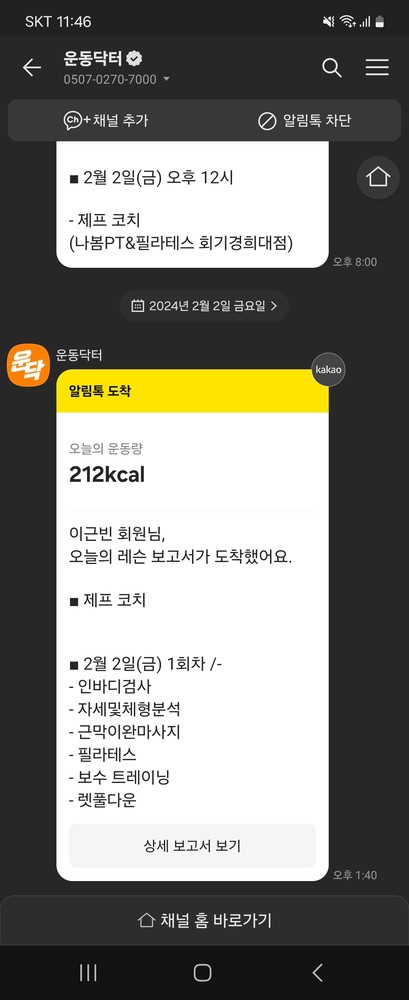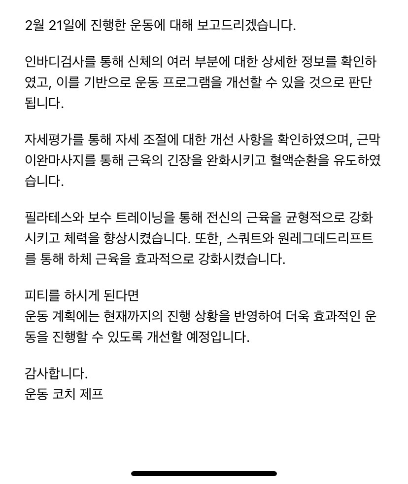 수업이 끝나고는 운동일지도 정리해서 보내주셔서 너무 좋았습니다.