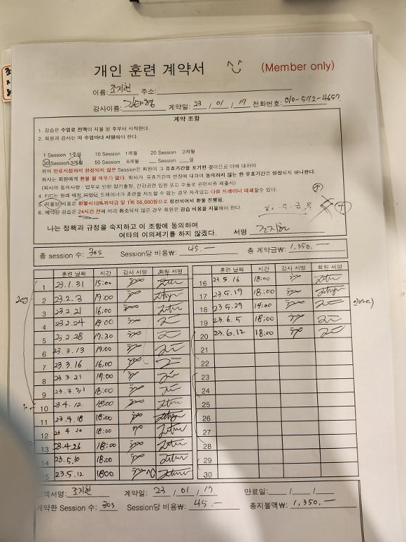 쌤과 함께한 5개월, 운동과는 거리가 먼 제 몸에 맞춰 차근차근 쫄깃하게 가르침을 주셨고 즐겁게 배웠습니다😊