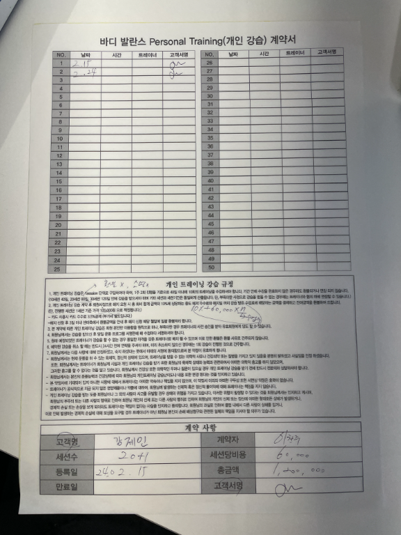 헬스장을 여러곳 다녀봤지만 제대로 배워본 적이 없어서 PT를 신청하고 진행했습니다.