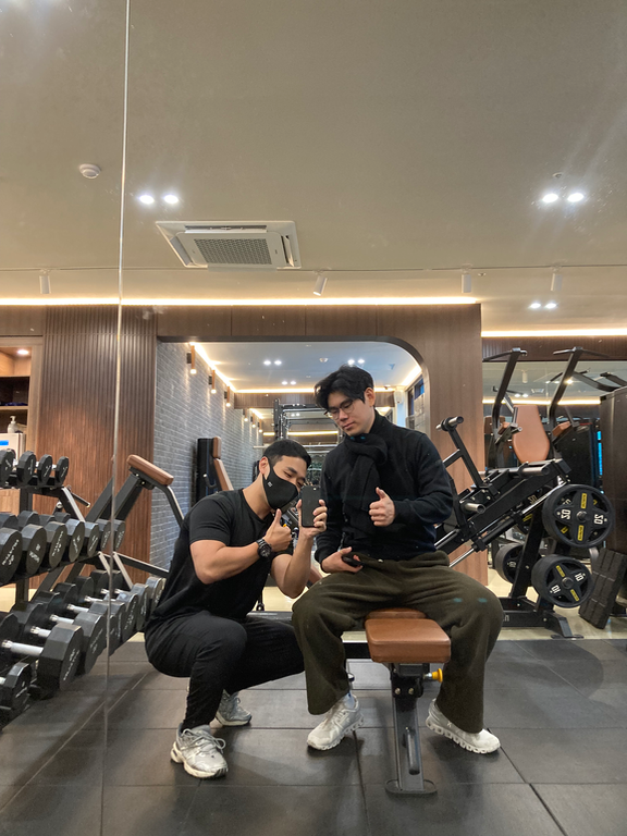 일단 쌤을 찾을 때 제가 원하는 몸매를 직접 운동으로 만드셨는지 다각도랑 영상 등도 참고해서 열심히 인터넷이랑 인스타 유투브 뒤져서 찾았구요(헬스 트레이너는 몸이 포트폴리오라 생각해서요!)