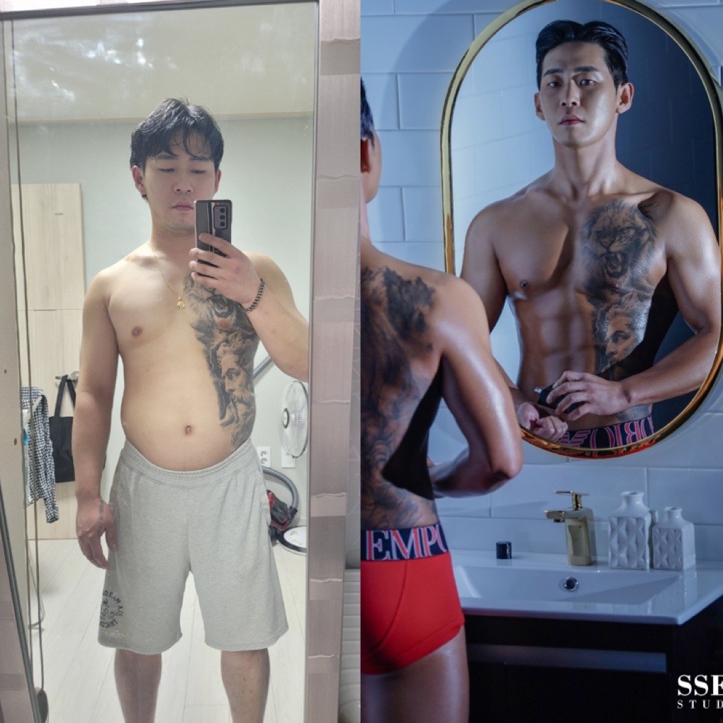 저는 다운쌤이랑 1:1 pt를 꾸준히 받다가 바디프로필에 흥미가 생겨서 같이 준비를 하게되엇는데, 첨해보는 식단에 강도잇는 운동에 포기할법도 하고 너무 힘들엇습니다 ㅠㅠ 근데 항상 옆에서 같이 지도해주시고 이끌어주셔서 52kg에서 43kg빼고 최종적으로 마음에 드는 사진을 찍을 수 있엇어요.바프가 인생의 버프엿고 코로나로 정신적으로도 운동하고 식단 지키기가 힘들엇는데 쌤 덕분에 무사히 끝낼수 잇엇습니다. 지금도 쌤한테 배운 걸로 꾸준히 운동하는 습관이 생겨서 아주 건강한 인생의 전환점을 만들어 주셧습니다💚❤️
