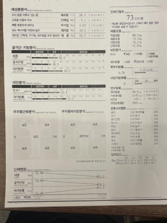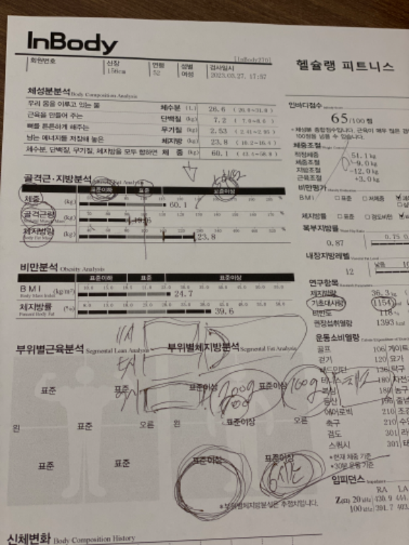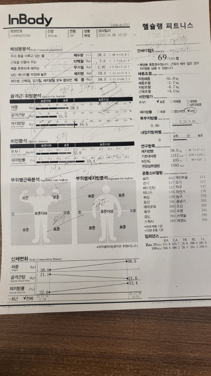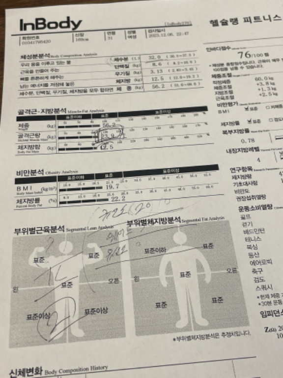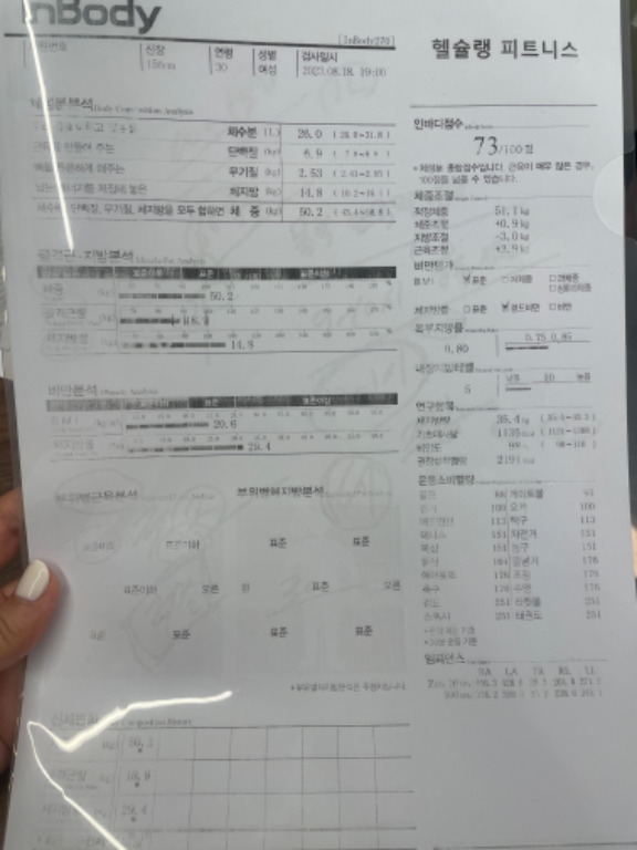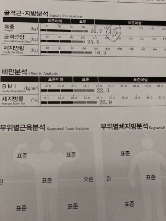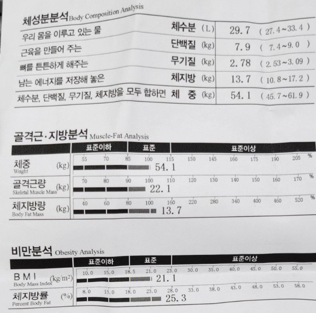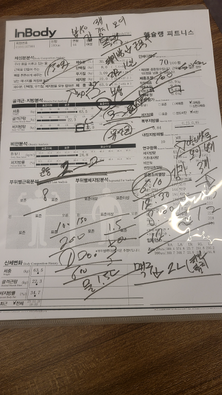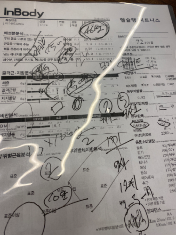 허리가 안 좋아서 허리 운동 위주로 많이 배웠고, 가끔 생각날 때마다 배운대로 했더니 이제 아픈 것도 많이 없어졌어요! 감사합니닷살 많이 쪄서 처음으로 피티받았었요. 그 때 근육이 거의 없었고 체지방 엄청 높았어요. ㅠㅠ