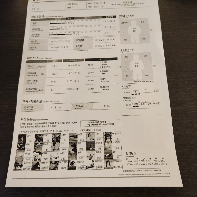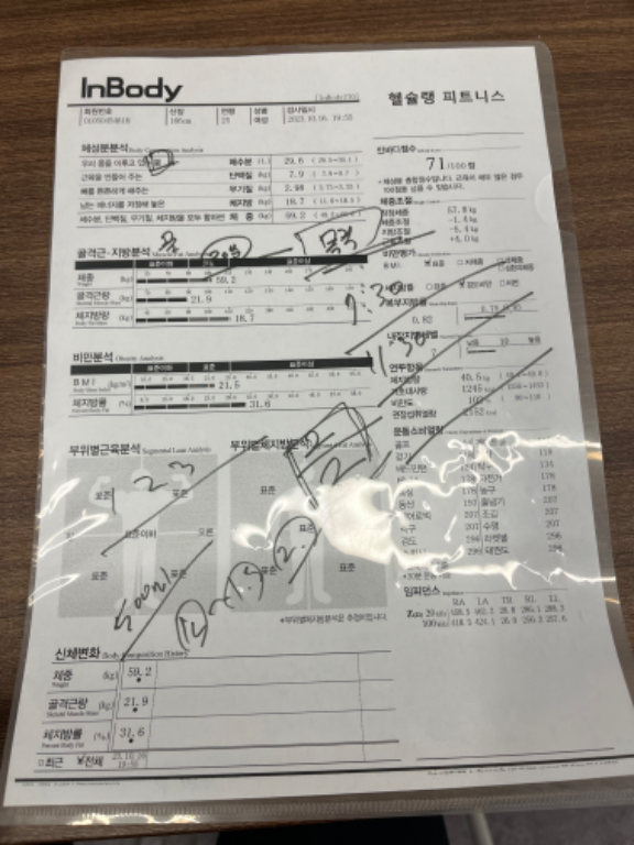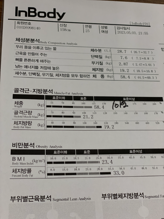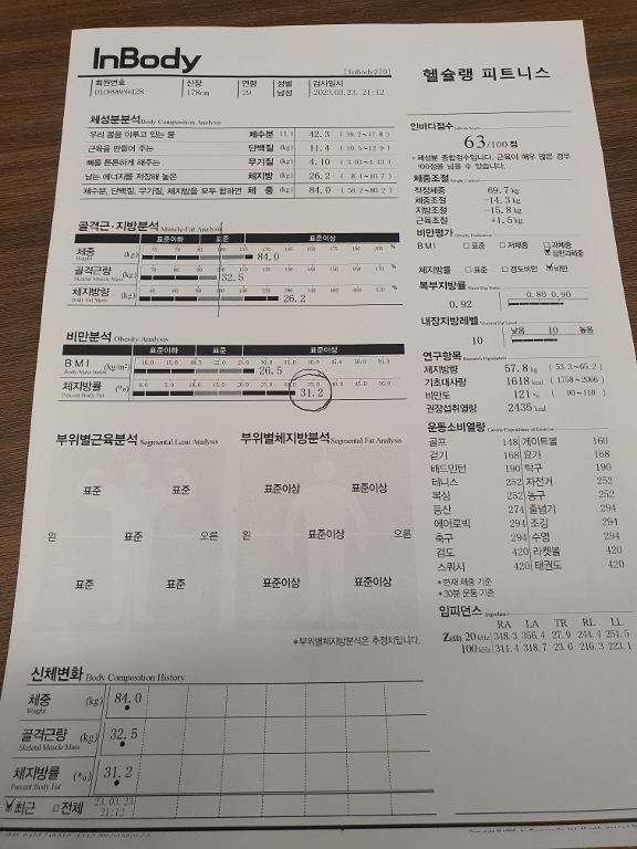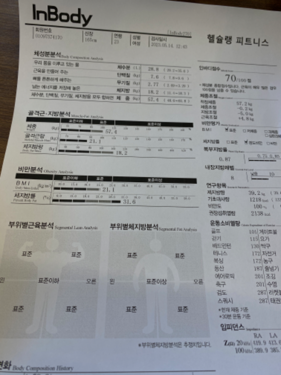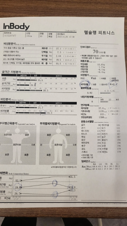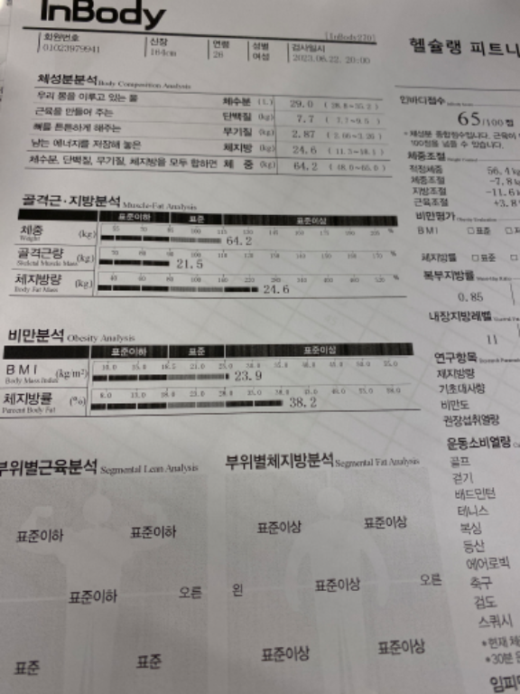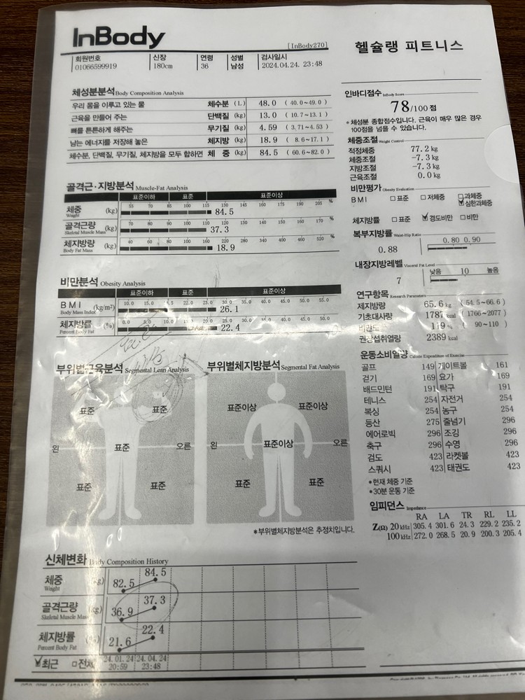 허리가 안 좋아서 허리 운동 위주로 많이 배웠고, 가끔 생각날 때마다 배운대로 했더니 이제 아픈 것도 많이 없어졌어요! 감사합니닷살 많이 쪄서 처음으로 피티받았었요. 그 때 근육이 거의 없었고 체지방 엄청 높았어요. ㅠㅠ