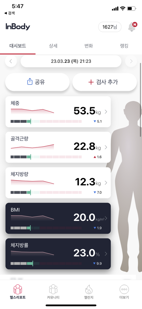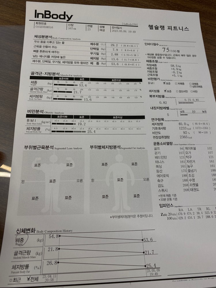 4회차 때 인바디 다시재보니 체지방률이 많이 감소해있어서 신기했어욤 감사합니당 ㅋㅋ
