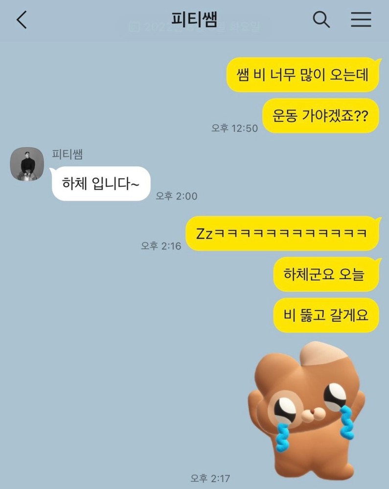 그리고 수업이 너무 재미있어서 수업시간이 호다닥 지나가서 한시간 수업이 아쉽기도 했었용 ㅎㅎ 그만큼 수업 엄청 재밌고 섬세하게 알려주세용 ㅎㅎㅎ 재등록 할래여!!!할줄 아는건 간단한 유산소 운동밖에 몰랐어서 처음에 이 트레이너 선생님이 나외 맞을까 걱정도 많았습니다 처음 운동 배우는점을 고려해서 적당한 채질과 당근을 주시면서 ㅎㅎ 재밌는 수업을 해주십니다 아직은 혼자할 때는 많이 부족한데, 수업 듣는날에는 후들후들거려서 땀에 푹 젖어서 제대로 굴려주십니다 ㅋㅋ