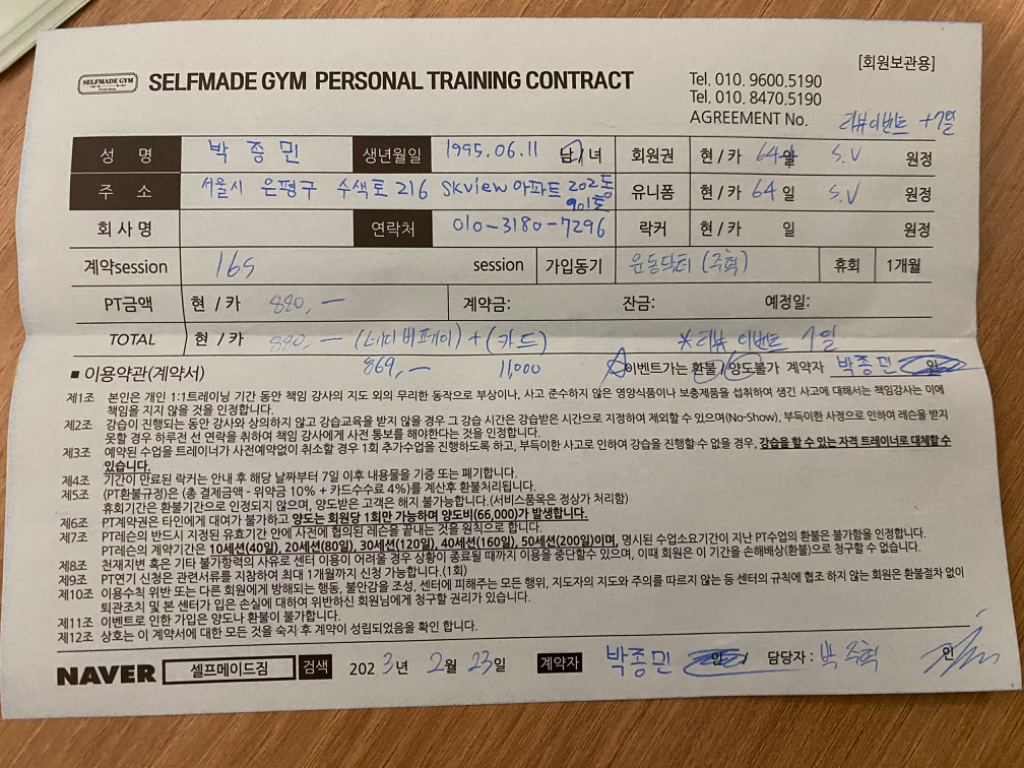 피티 선생님을 다양하게 만나봤지만 이렇게 기록해주시는 건 처음이었는데 정말 좋았습니당! 아직 어렵지만 혼자서도 즐겁게 운동할 수 있게 해주셔서 감사합니다😊