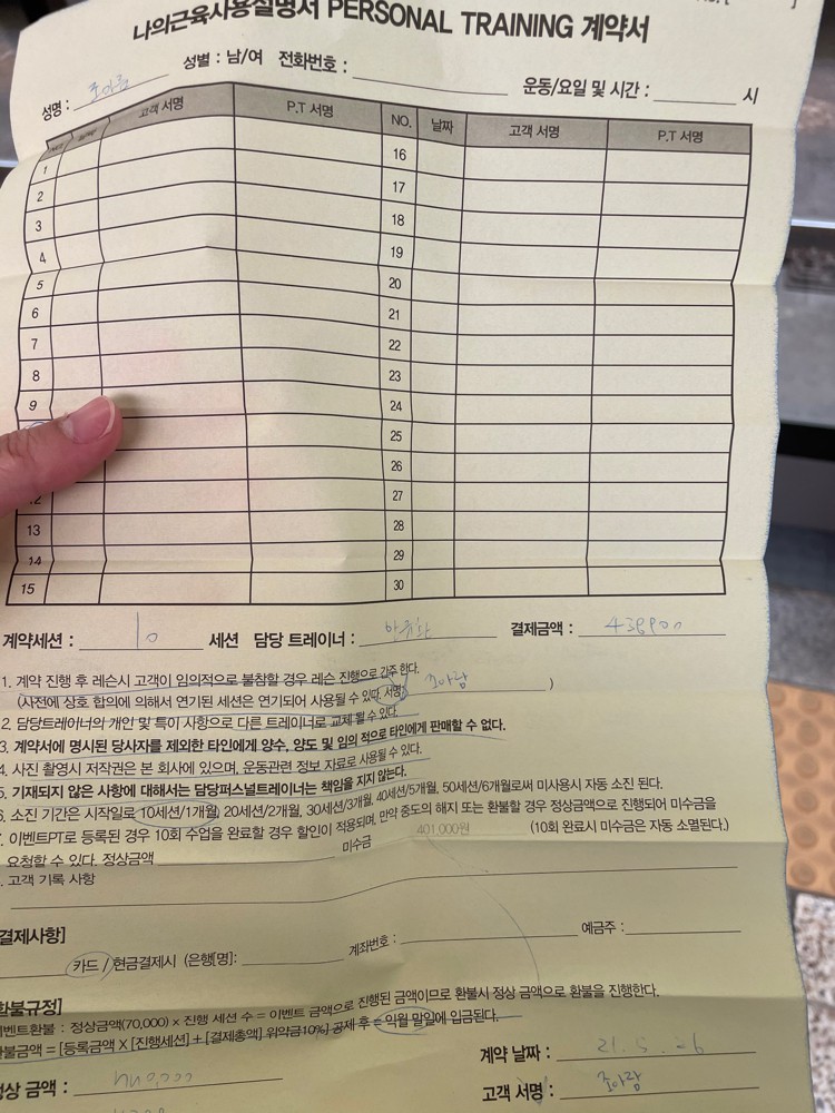 그래서 PT를 알아보던 중에 발견하게 되었어요! 다른 곳 상담도 갔었는데 여기 트레이너쌤께 1회체험 받아보고 나서 가장 믿음이 가서 10회 등록하고 왔습니다!