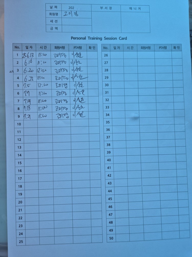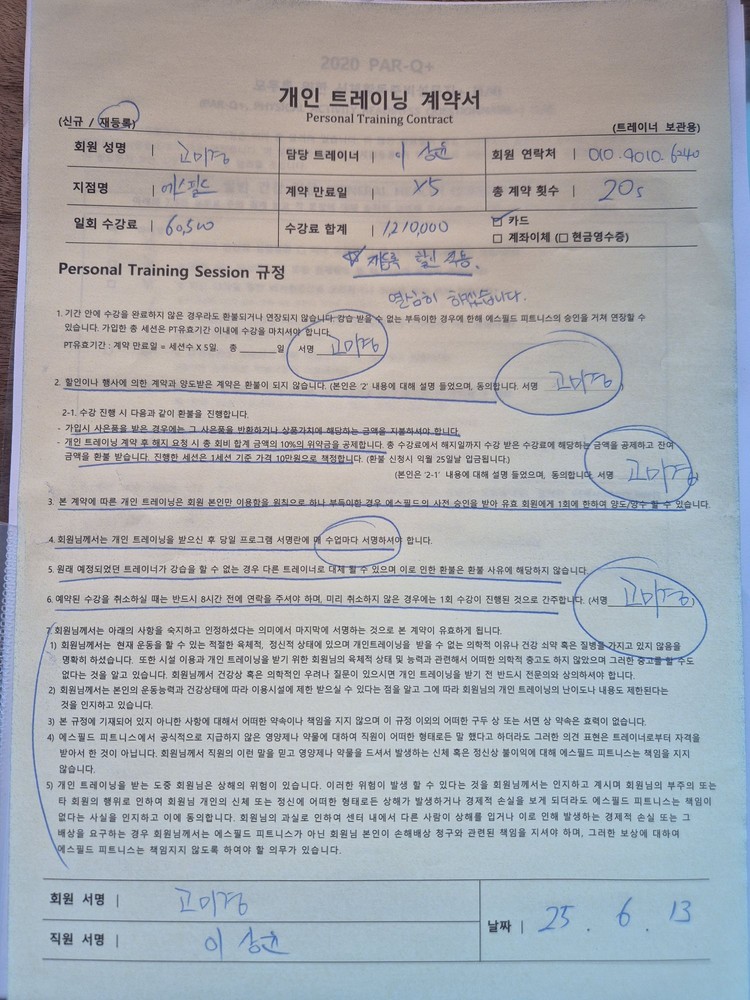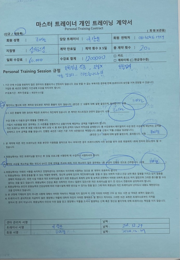 상담을 받으면서 과거,현재 질병사항 체크와 체형평가를 통해 잠재적 위험성을 파악하셨고 운동방향성에 대해서
