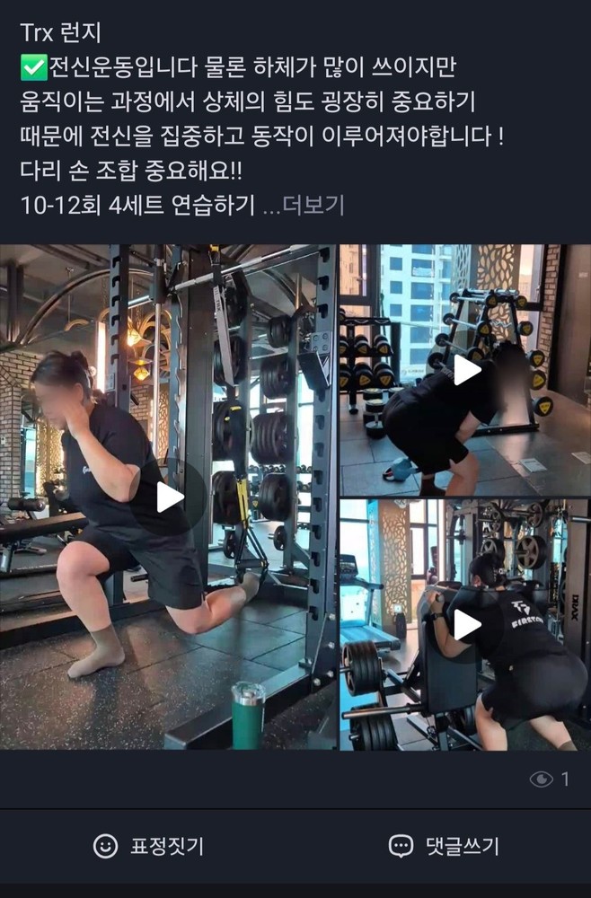 자세나 동작을 영상으로 찍어 남겨주셔서 개인운동할 때 보고 할 수 있고 한번 했던 동작이라도 말로만 설명하지않고 직접 동작을 보여주고 내가 맞게 하고 있는지 자세하게 봐주세요!