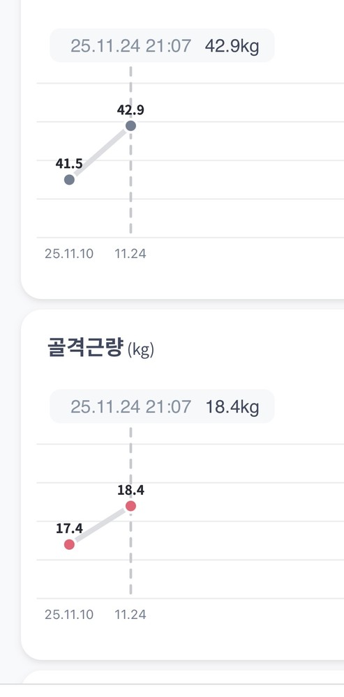 pt 3-4회 만에 41kg => 43kg 까지 증량 성공 해서 너무 기쁘네요!! 올해 안에 45kg까지 찍어 볼 수 있기를 !!! 감사합니다