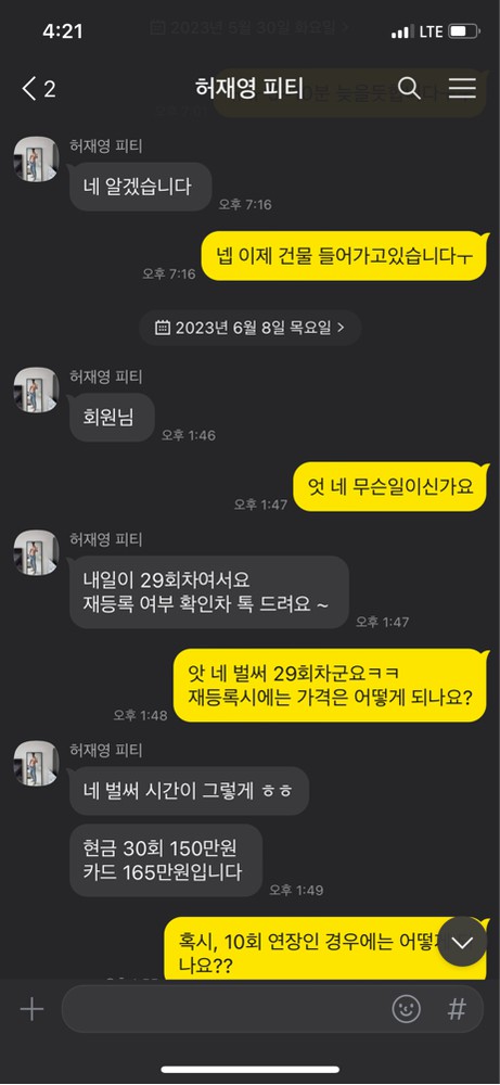 지금은 담당트레이너가 대표님이라서 그만둘일이 없어서 너무 좋습니다 조급하게 하지않고 건강목적으로 꾸준히 받을겁니다