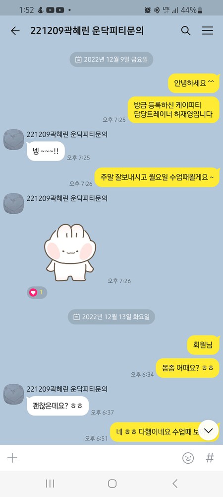 친절하게 운동 잘 가르쳐주셔서 잘 배우고 있어요☺
