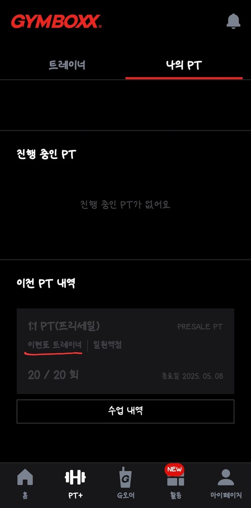 다음에 PT를 다시 하게 된다면 이현표 선생님께 꼭 다시 받고 싶습니다.