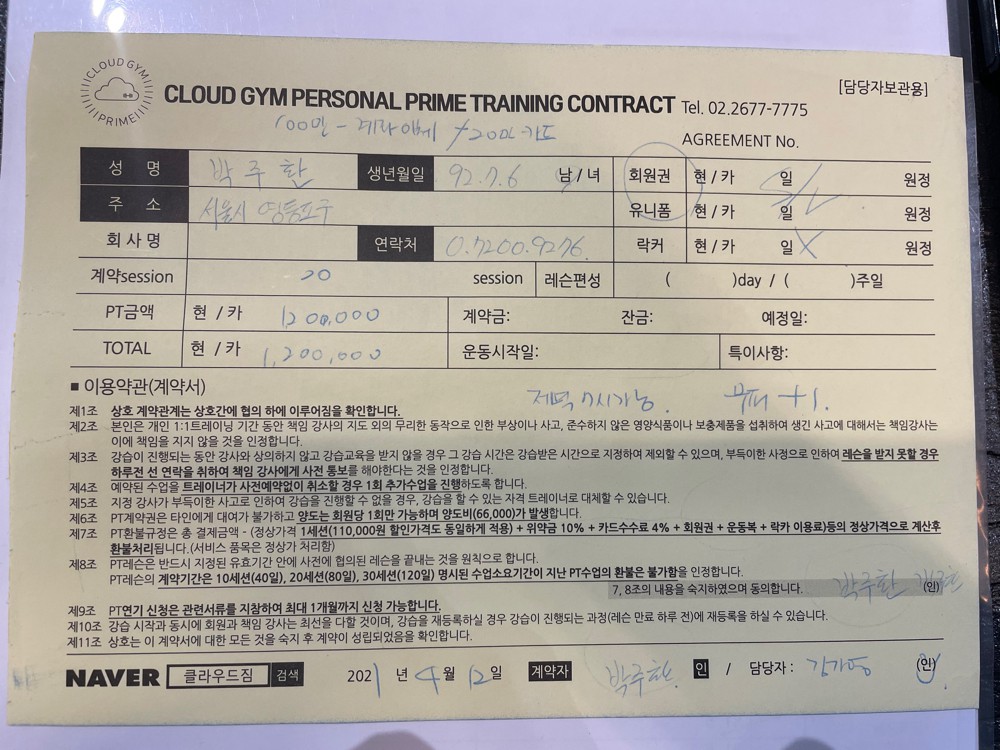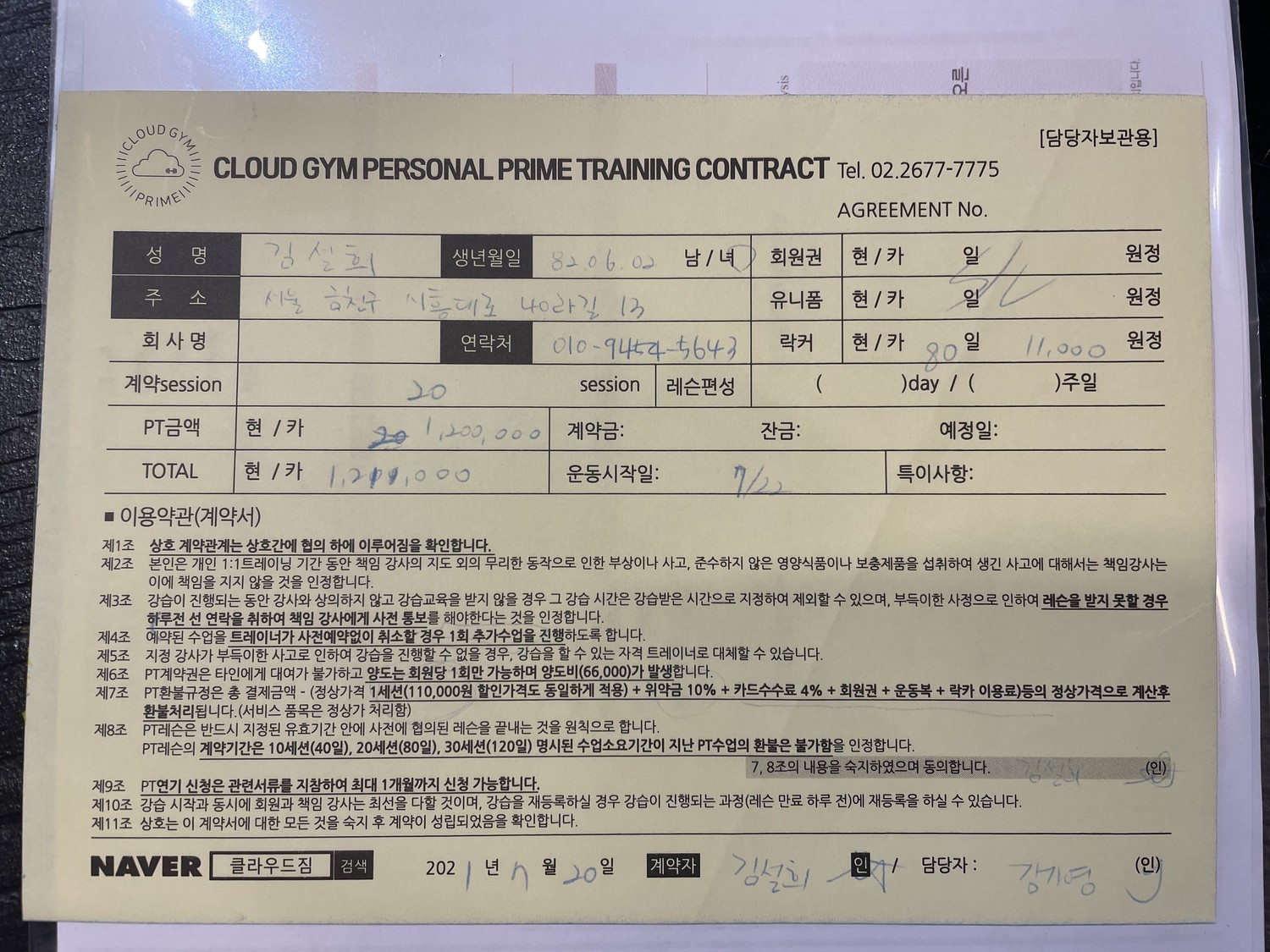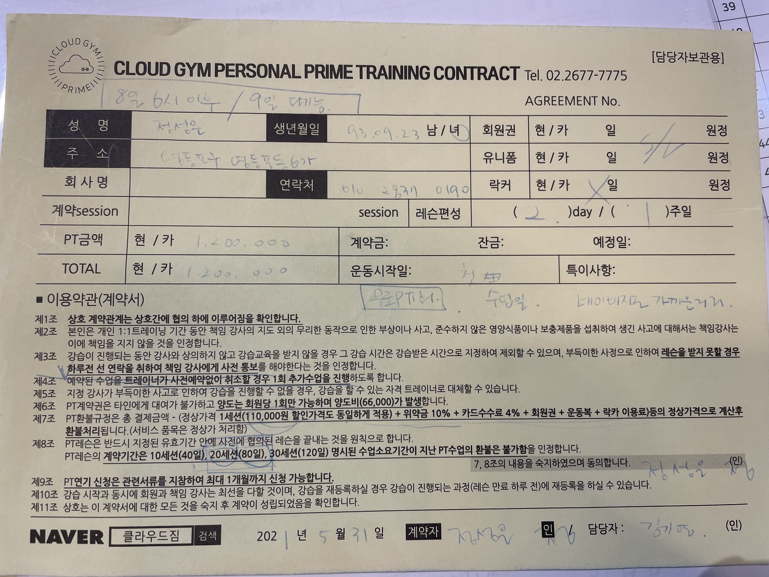첫 PT라 센터와 트레이너 쌤을 결정하는게 쉽지 않았습니다..