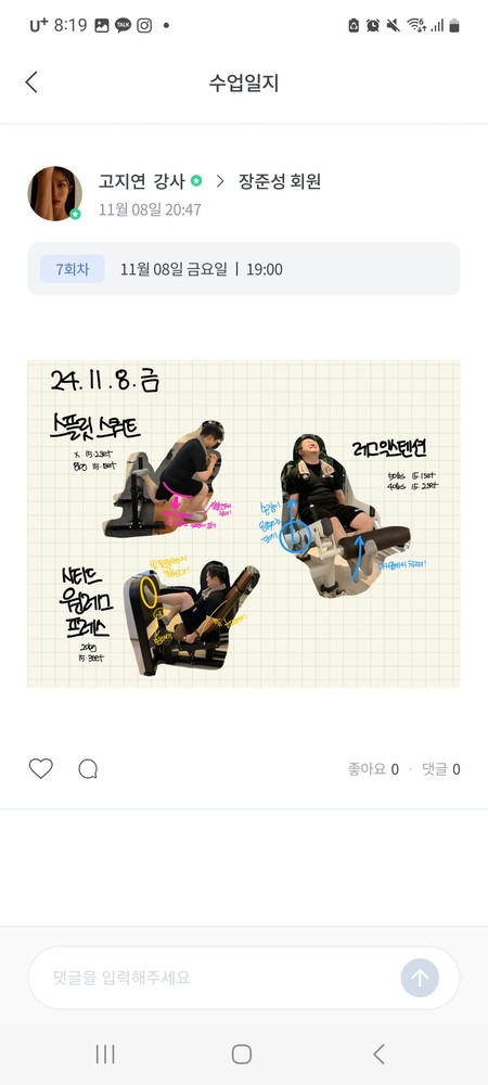 그리고 자극이 안온다구 하면 바로 다른방법들을 이용해서 맞는 방법을 찾아주세요!(굉장히 열정적으루….! 제 몸이 이상해서 자극 안오는게 꽤 많은데 지금은 맞는 방법을 찾아주셨어요!)+기구 이용하는 운동들도 자세도 먼저 보여주시고 놓치기 쉬운것들도 잡아주셔서 너무 좋아요!
