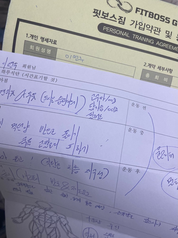 체중도 있고 내향인으로서 솔직히 새 운동 배우는 것도, 새로운 체육관에 적응하는 것도 마음이 참 부담스러웠습니다ㅠㅠ 하지만 선생님 항상 밝게 인사해주시고 적극적으로 임해주셔서 마음의 짐을 덜고...즐겁게 운동했습니다. 처음엔 제가 운동하는 모습 보는 것도 보기 민망했지만 보내주신 영상 보고 오늘 한 운동 무게 및 목록 보면서 다 체크하게 되더라구요.
