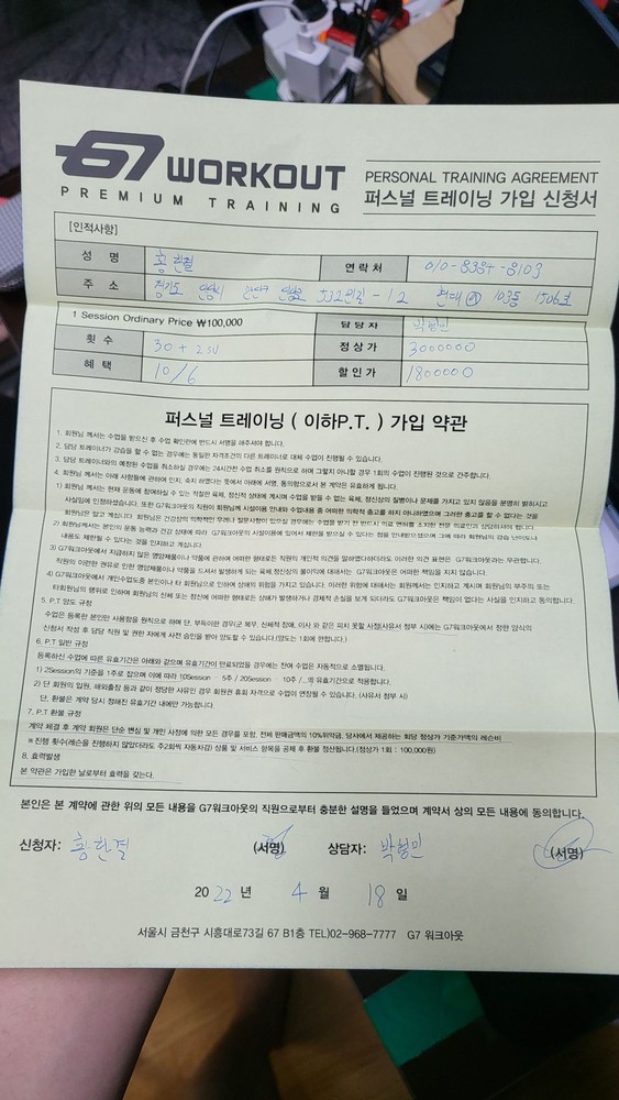 지워크아웃을 가서 헬스를 끊으면서 혼자 운동하면 의지가 떨어진다는 생각이 들어 신청한 pt