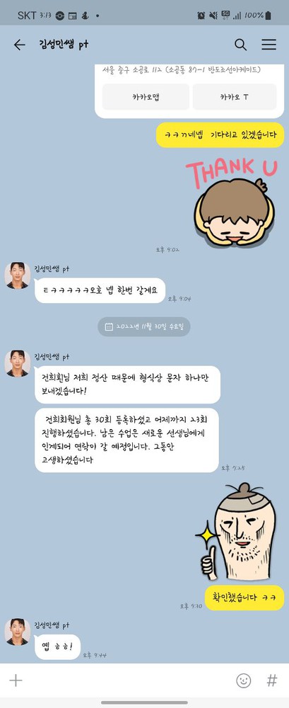 성민쌤 상담듣구 pt등록했습니다!!