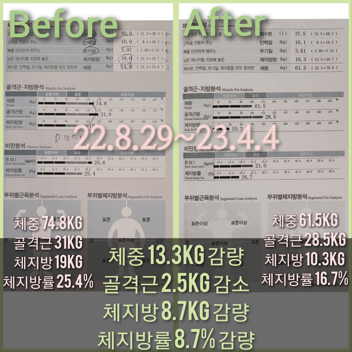 저는 바프를 찍는다던지 단기간에 체중 감량 목적이 아니었기 때문에 고중량으로 강하게 운동하기 보다는 현상 유지에 더 중점을 두고 진행했고, 굉장히 만족스럽게 생각하고 있습니다.