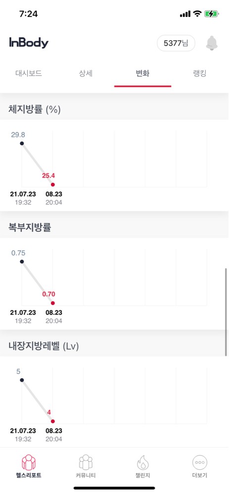 인바디 결과도 한달사이에 많이 좋아지고 몸이 변해가는게 눈에 보여서 너무 신기했어요ㅋㅋ그래서 이번에 pt 추가로 더 등록했습니다ㅎ 저처럼 운동이 처음이거나 건강하게 몸 만들고 싶으신 분들은 로키쌤 PT 꼭 받으세요!!👍👍👍