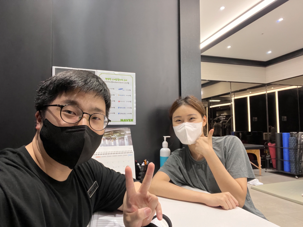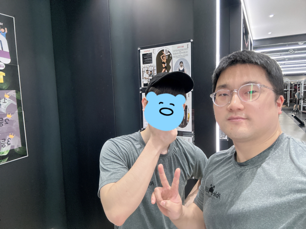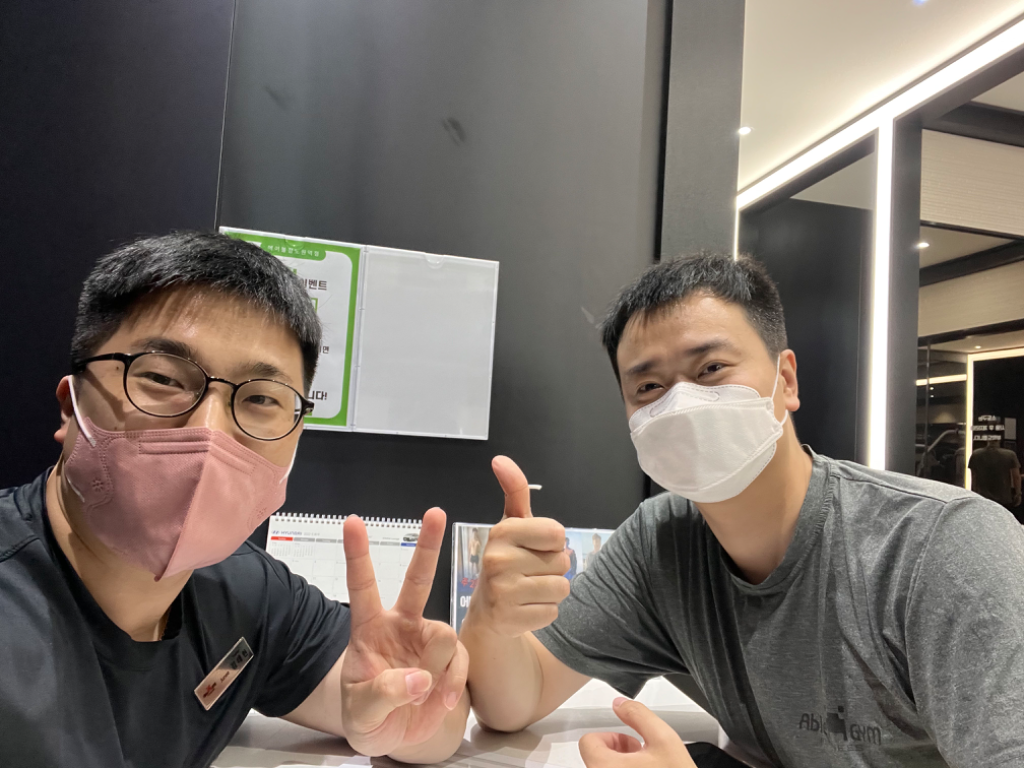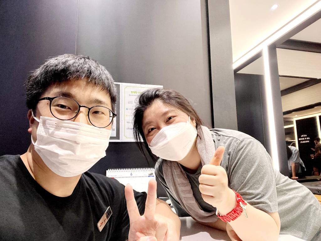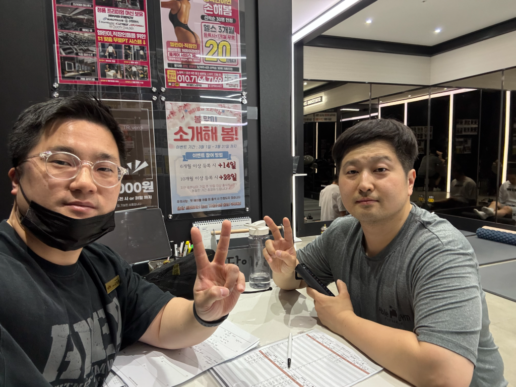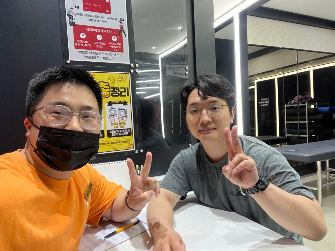 원래 배웠던 트레이너 선생님이 그만 두시게 되면서 태현 선생님과 같이 피티를 받게 되었습니다
