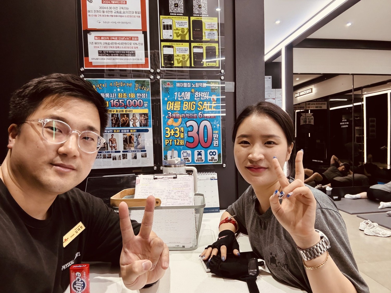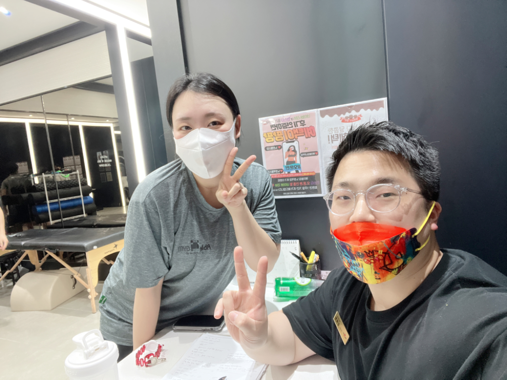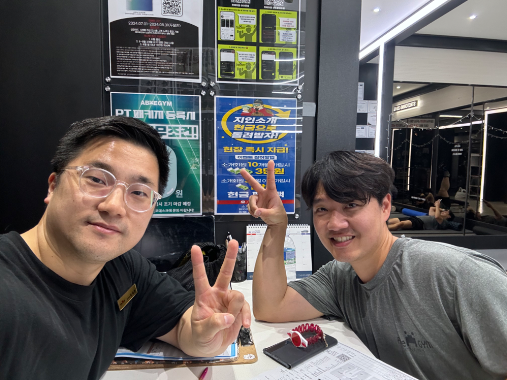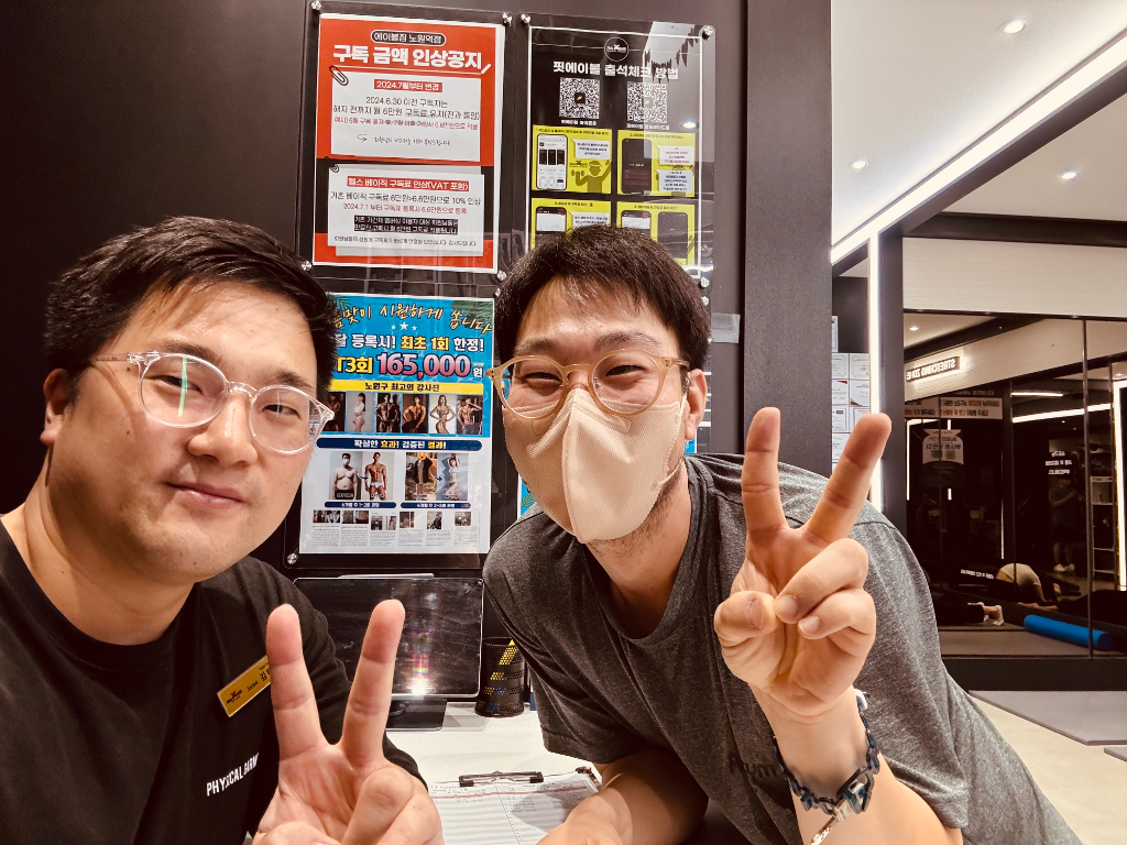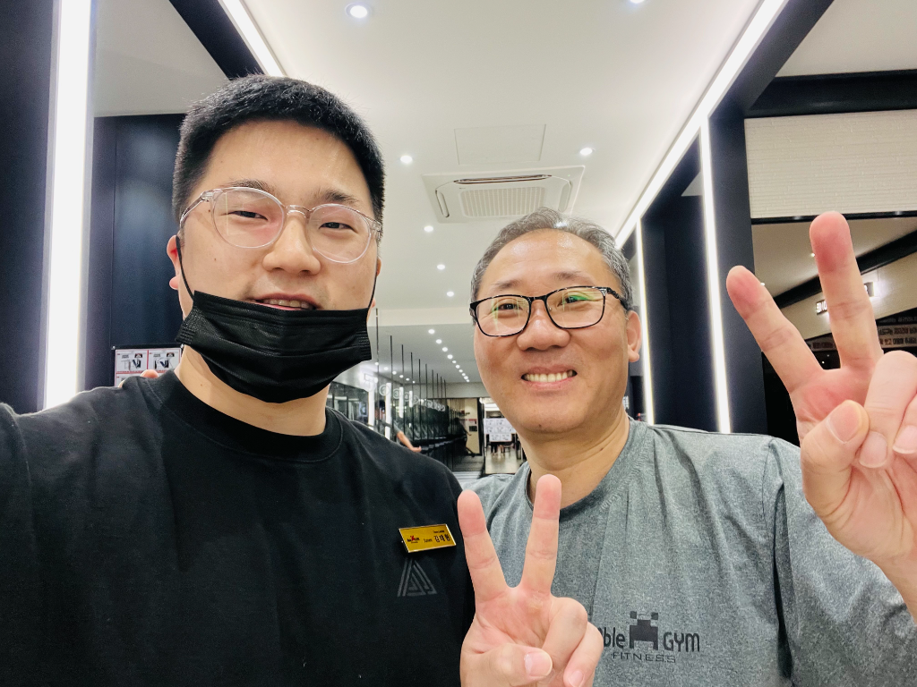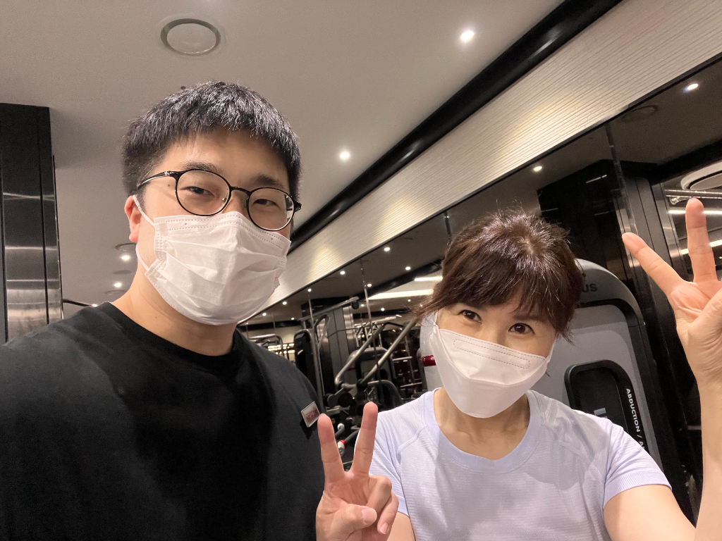 원래 배웠던 트레이너 선생님이 그만 두시게 되면서 태현 선생님과 같이 피티를 받게 되었습니다