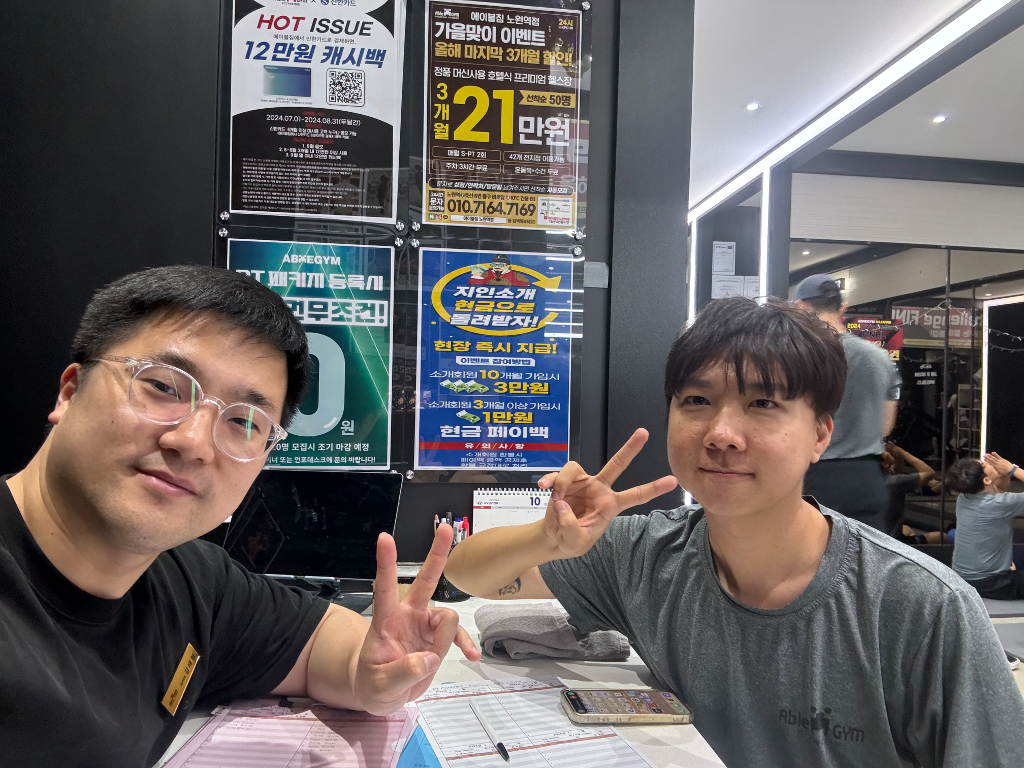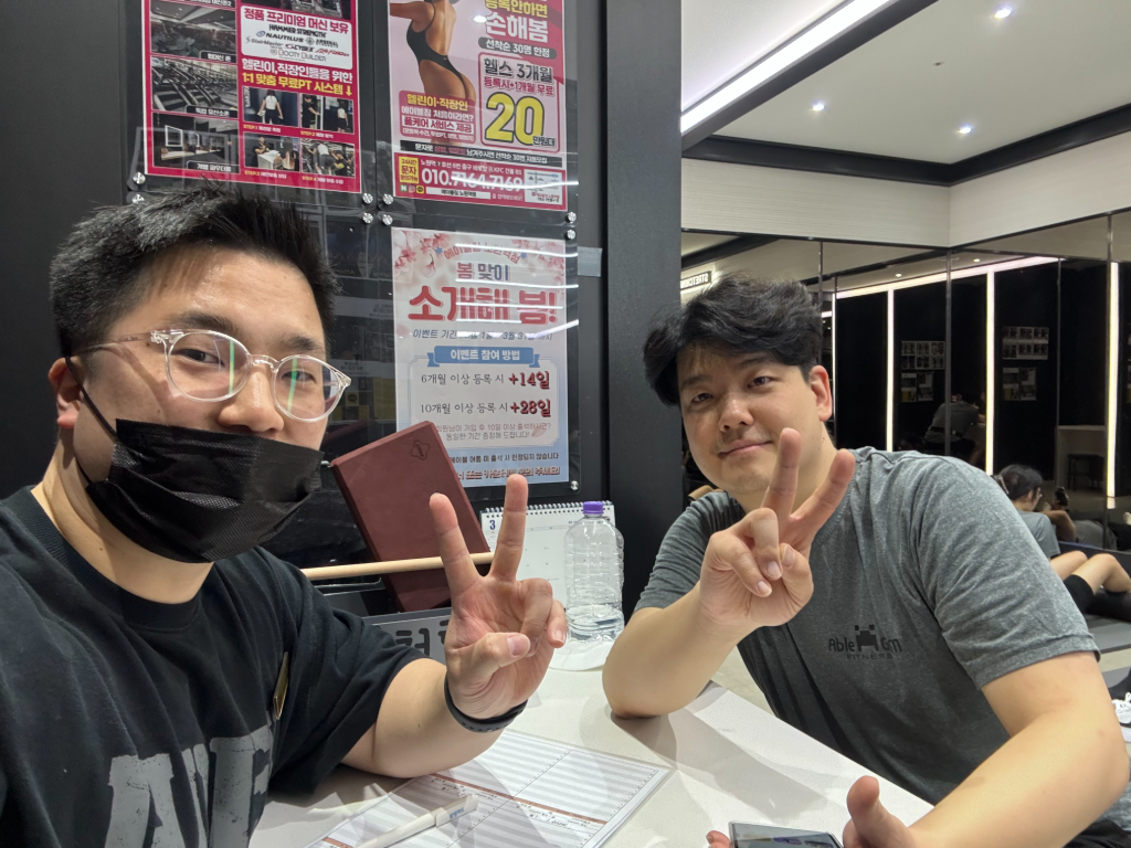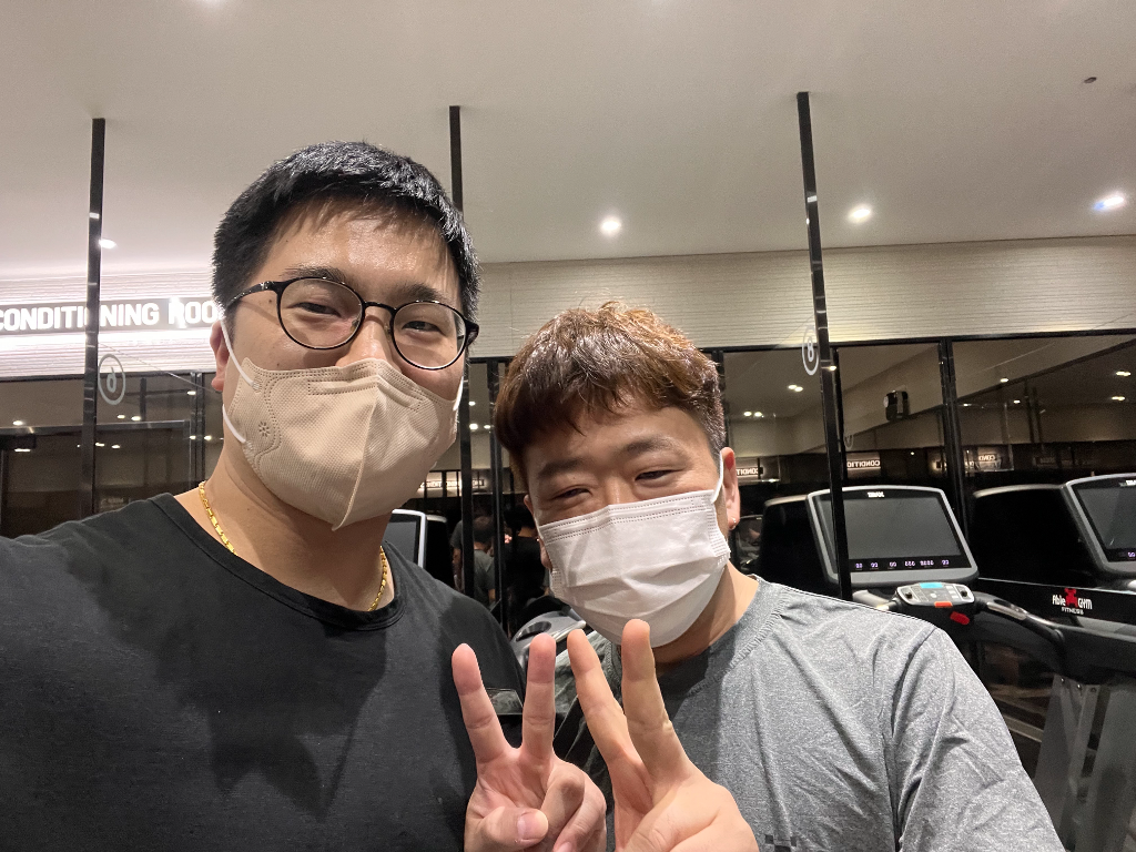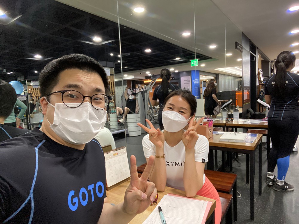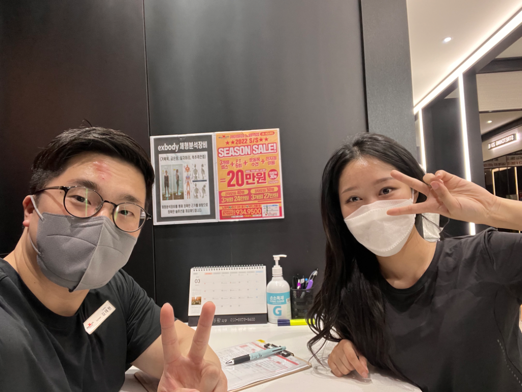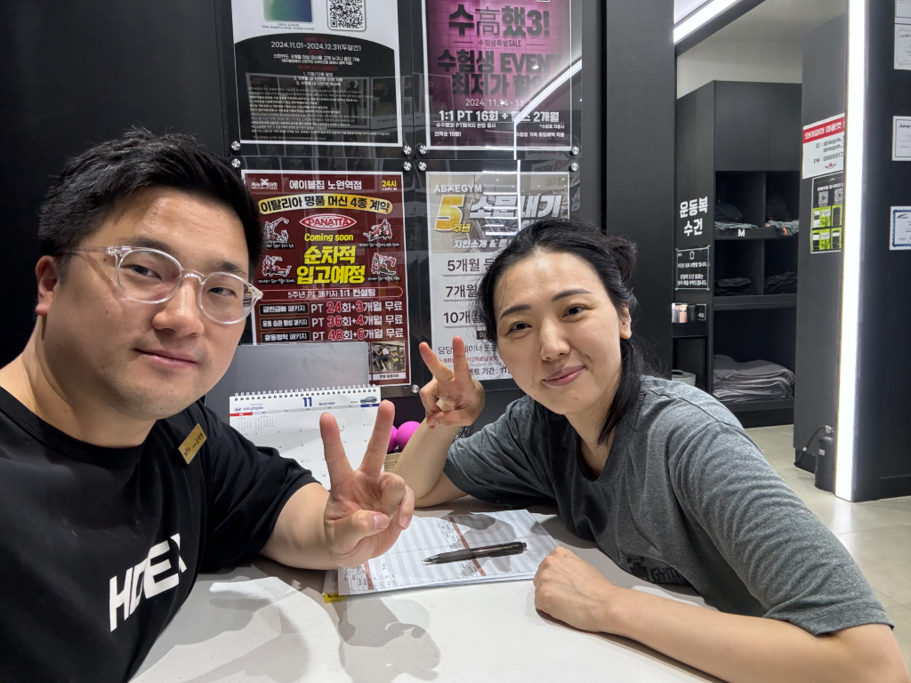 원래 배웠던 트레이너 선생님이 그만 두시게 되면서 태현 선생님과 같이 피티를 받게 되었습니다