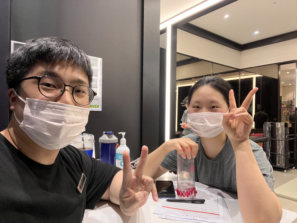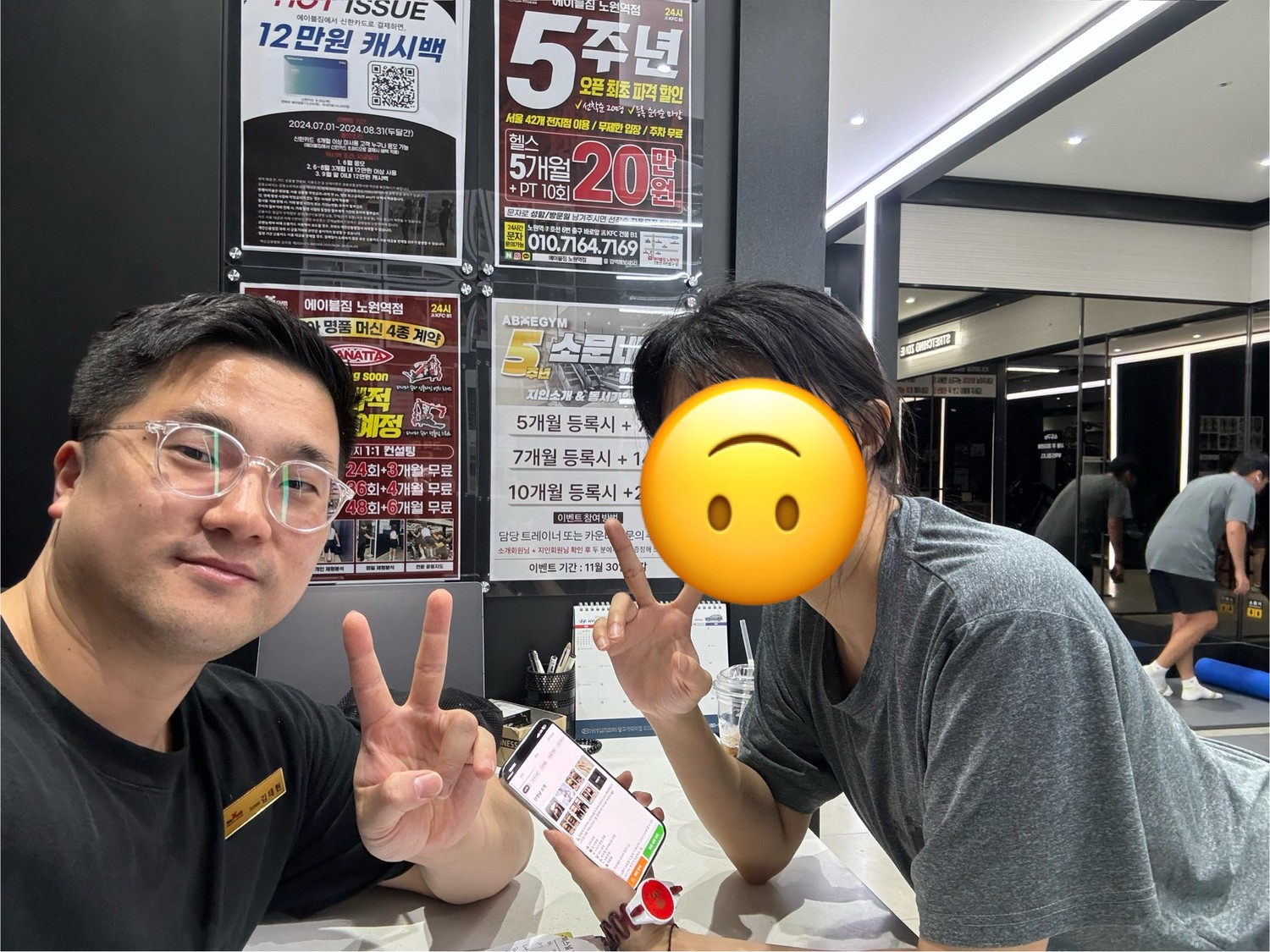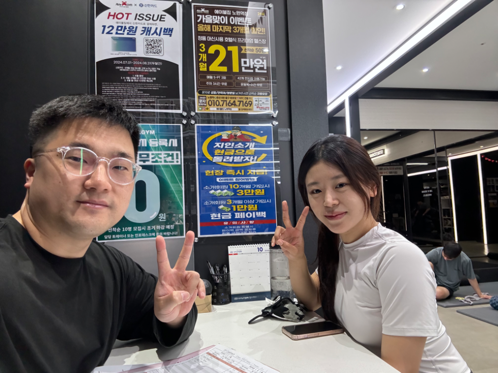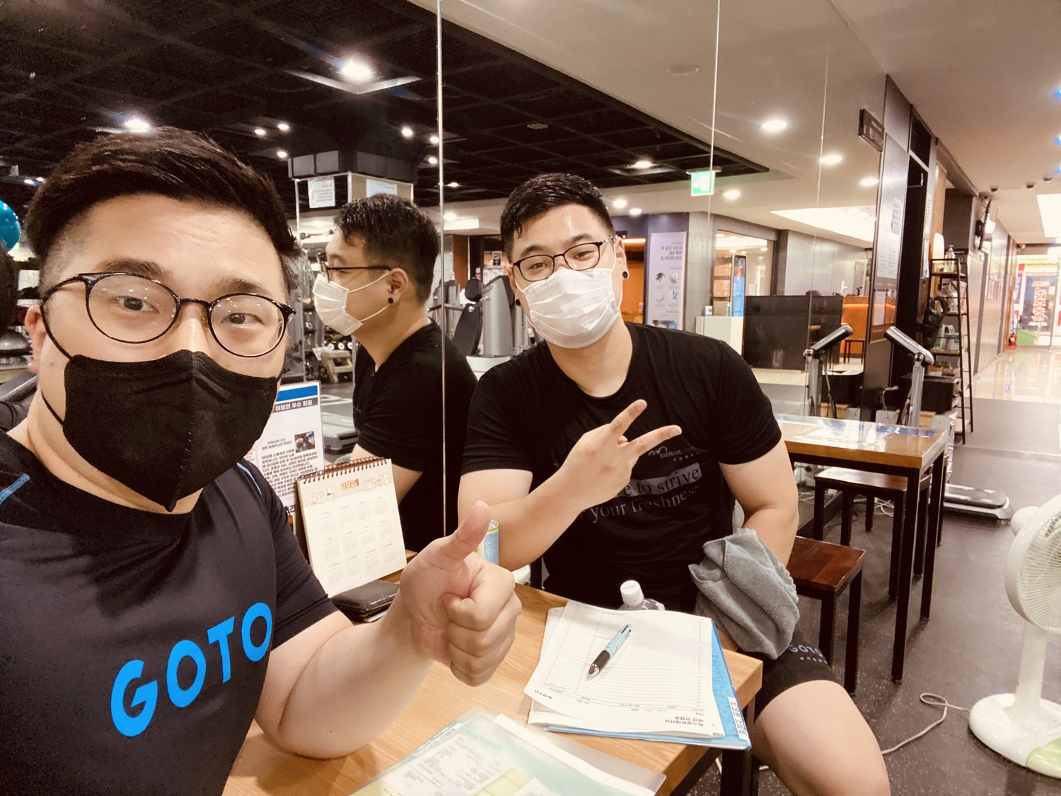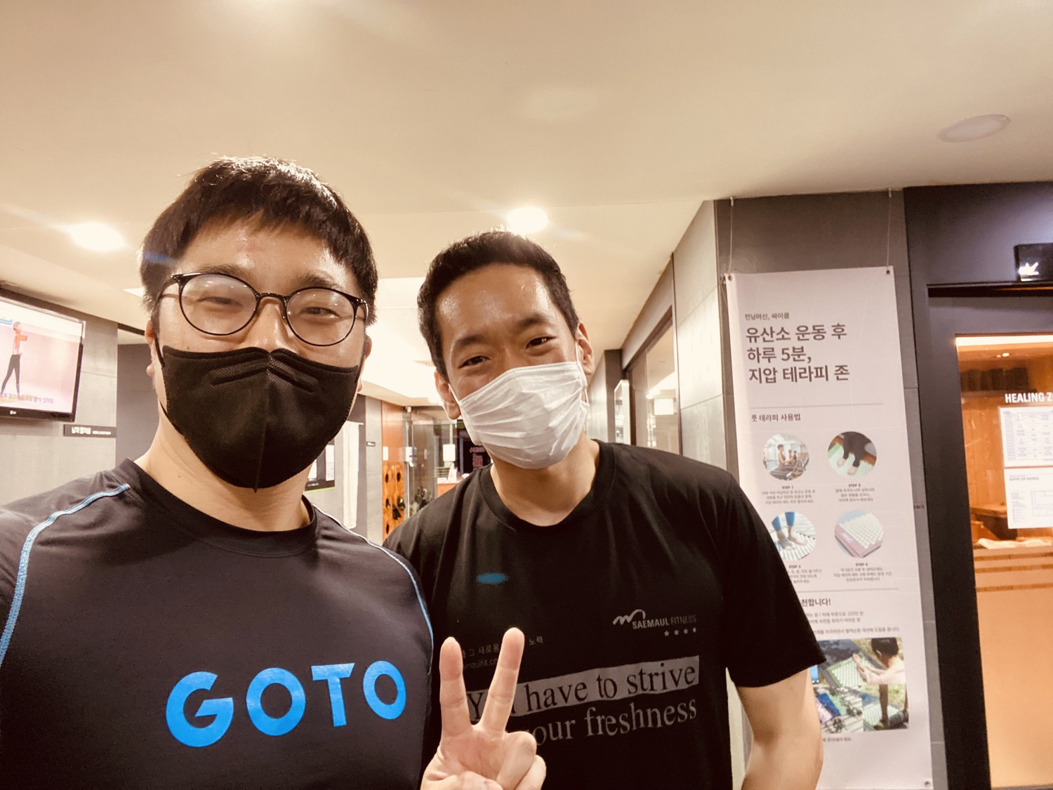 원래 배웠던 트레이너 선생님이 그만 두시게 되면서 태현 선생님과 같이 피티를 받게 되었습니다