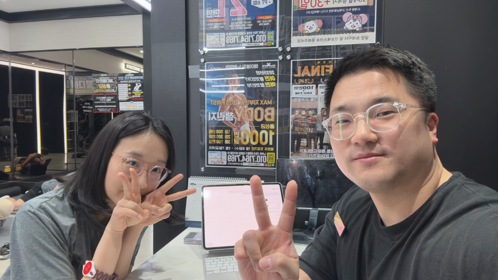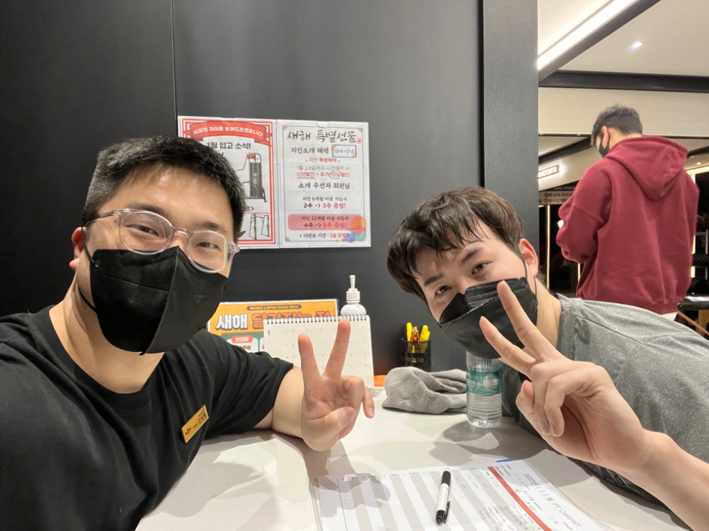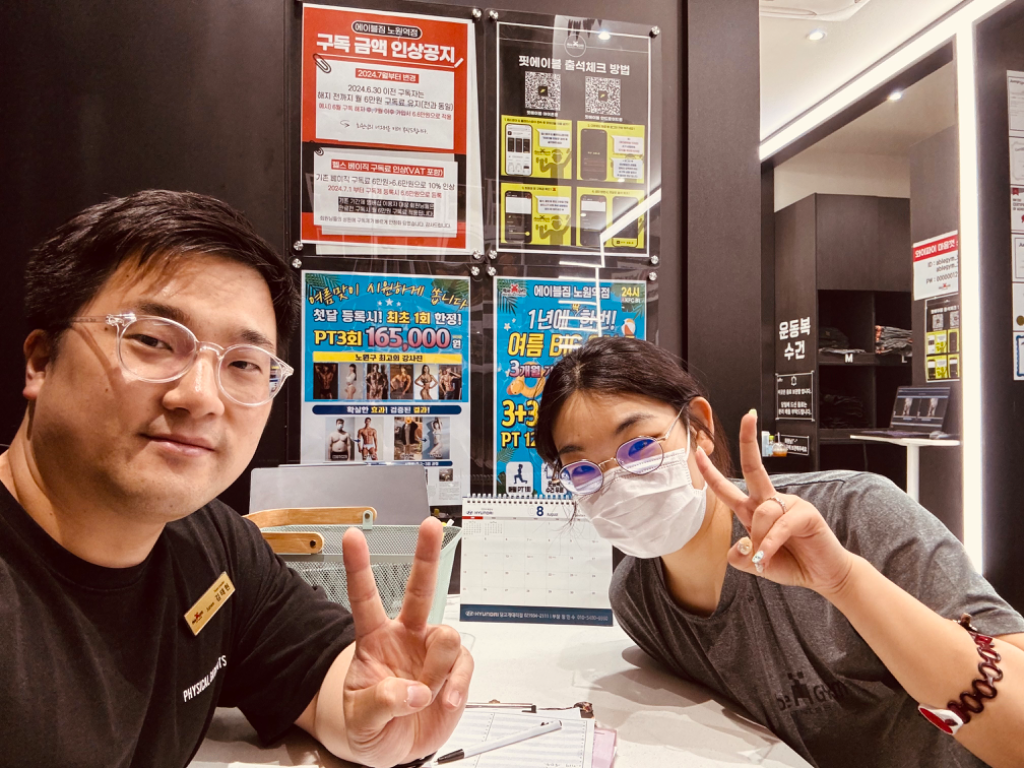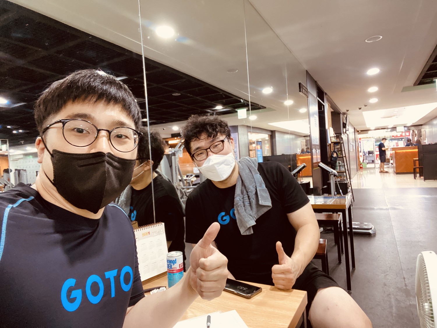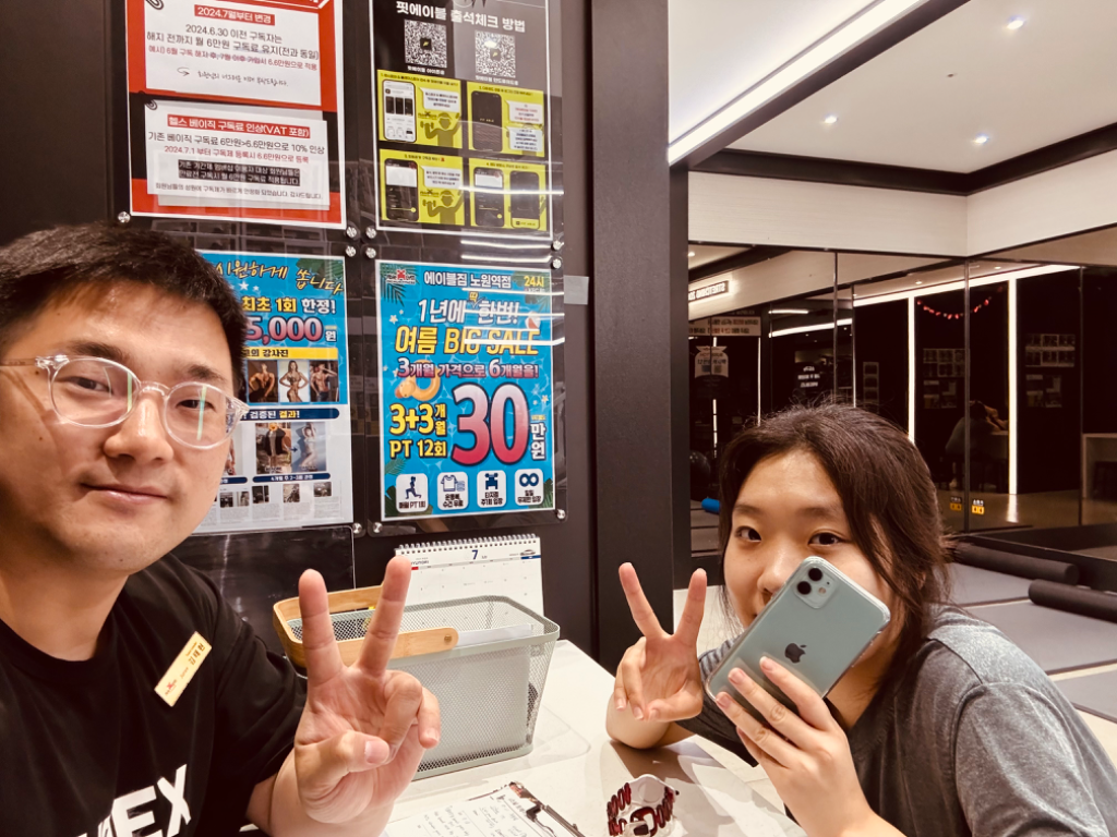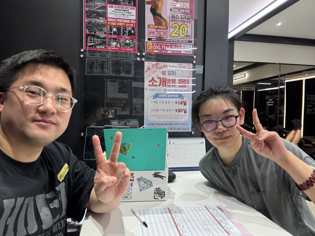 원래 배웠던 트레이너 선생님이 그만 두시게 되면서 태현 선생님과 같이 피티를 받게 되었습니다