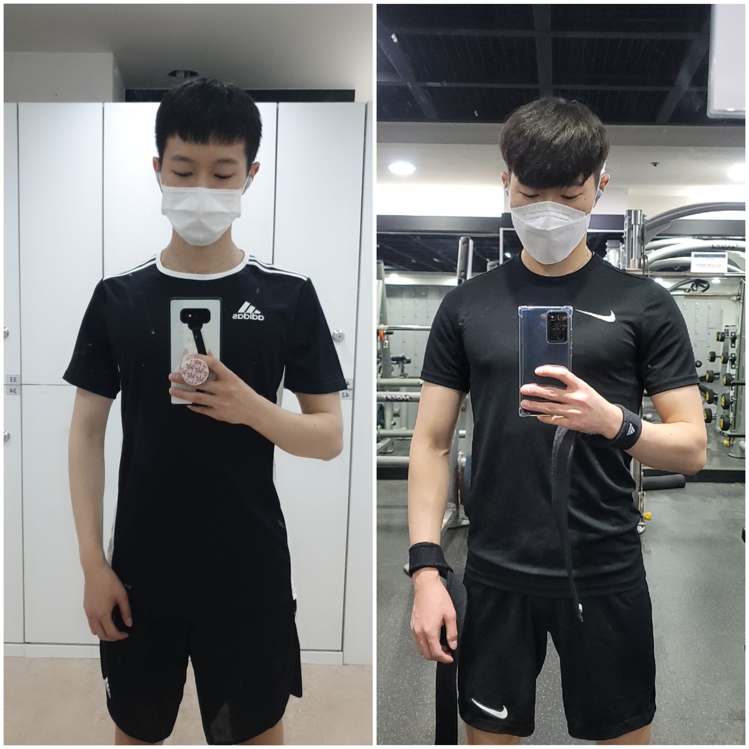 운동을 시작하면서 2년전 허리디스크가 터져 시술받고 퇴행성 디스크가 있었고 고등학교때부터 아파왔던 오른쪽어깨가 신경쓰였습니다. 겨울에 운동도 하지않고 먹기만해서 여름전 반팔은 입은모습을 보고 더이상은 안되겠다 싶어 코칭을 받아 다치지 않고 체중감량과 근성장을 위해 PT를 20세션 등록하고 트레이너님과 함께하게 되었습니다😄