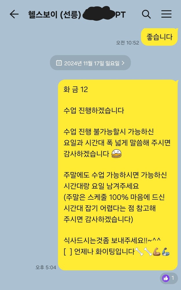 남은 일정도 잘부탁드려요!운동을 해본적이 없어서 처음으로 운동을 시작해보고자 pt를 등록했고, 지인의 추천을 받아서 경원쌤으로 상담 지정드렸습니다.