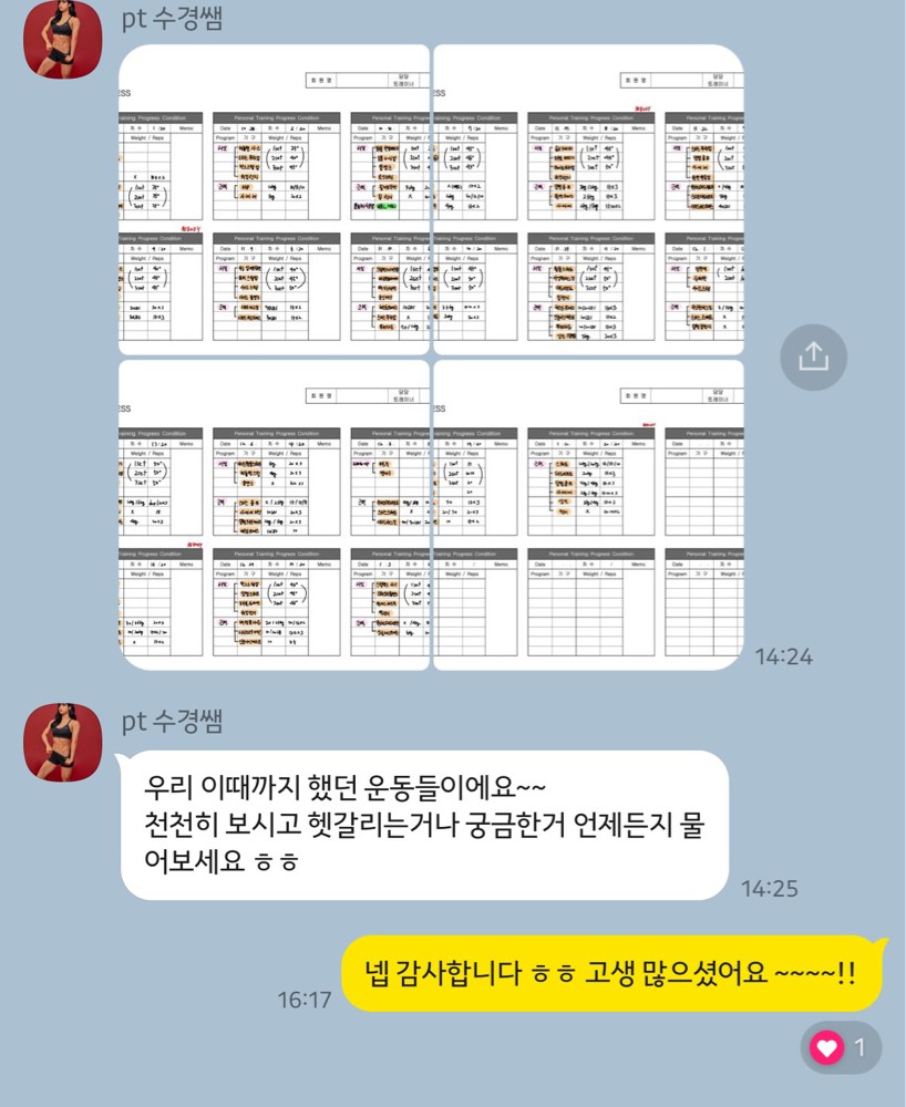 다시 돌아가도 수경쌤께 pt 받고싶을 정도로 너무 좋았습니다!!!수능 끝나구 수경쌤과 10회 피티 진행햇어요