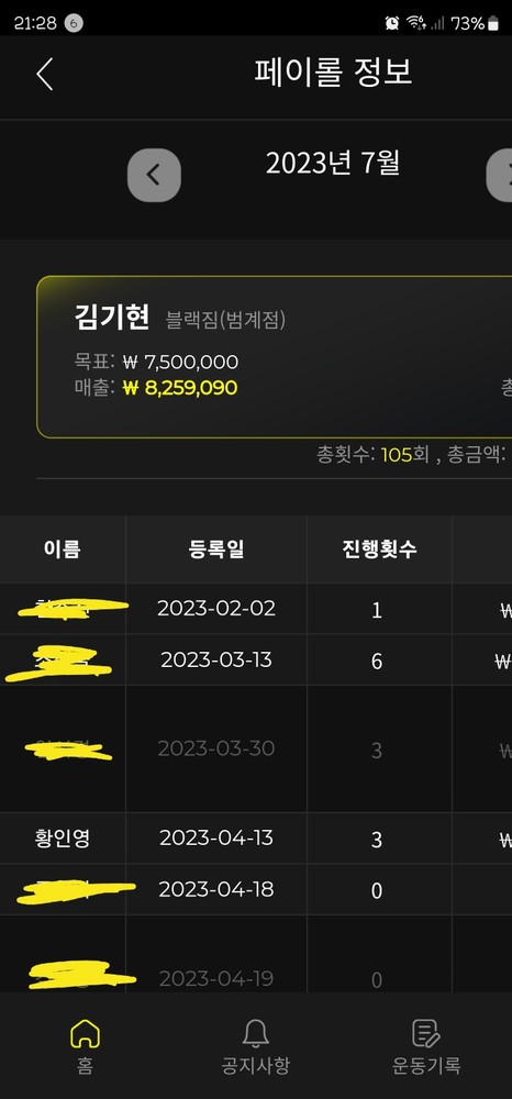 그동안 헬스장 1년 끊어도 한달도 잘 안나갔었는데 피티를 추가에 추가까지해서 35회 하는 중이고 운동도 4개월째 잘하고 있어요.