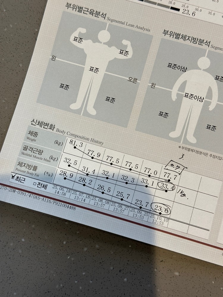체중 감량이 잘 안 되는 체질이라 많이 고민하셨을 텐데, 용기 내서 시작해주셔서 이렇게 좋은 변화를 함께 만들 수 있었던 것 같습니다. 매 수업을 즐겁게 받아주셔서 지도하는 저도 항상 힘이 났어요!