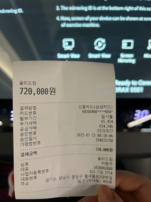 운동하고 개인 기록 남기려고 유산소 시간과 거울셀카를 찍는데..사진으로 첨부해요!