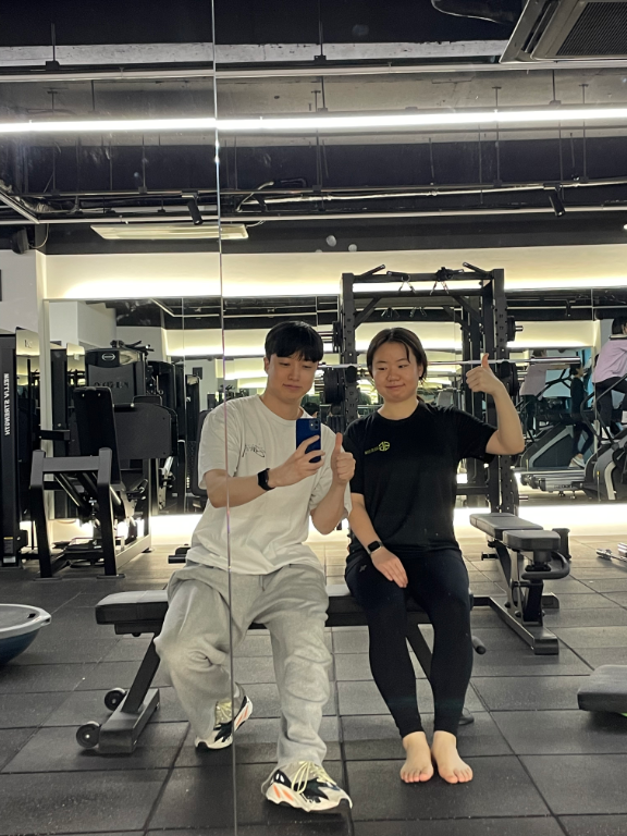 운동을 시작한건 키와 몸집이 왜소해서 항상 콤플렉스를 가지고 있다 홈트를 하다 발전이 없어서 먼저 다니던 친구에게 소문을 듣고 형주선생님에게 배우기 시작했어요.