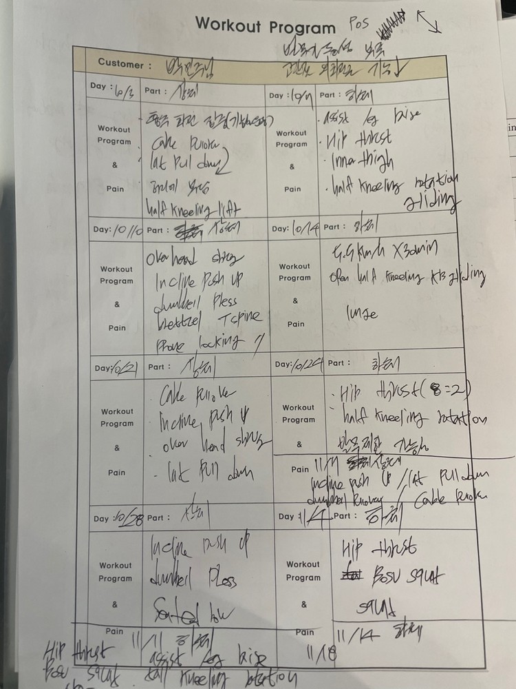 개인운동도 거의 매일 갔는데요, 60-80분 채워서 하고 개인운동인데도 샘이 신경써주셨어요 ㅎ