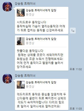 운동 후에는 운동 영상과 함께 자세한 설명까지 보내주셔서 혼자서 운동할때 참고하기 용이했습니다 :)